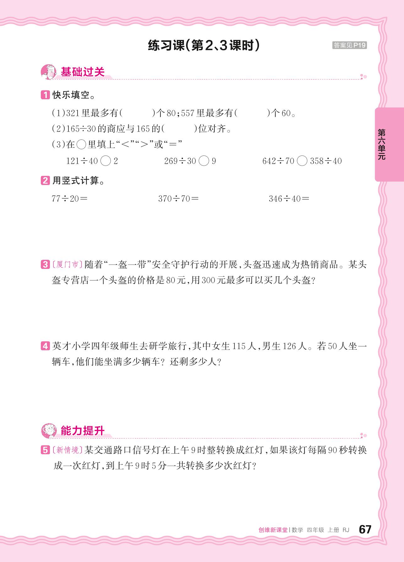 2024秋上册四年级数学人教版 第六单元 除数是两位数的除法——除数是整十数的除法练习课