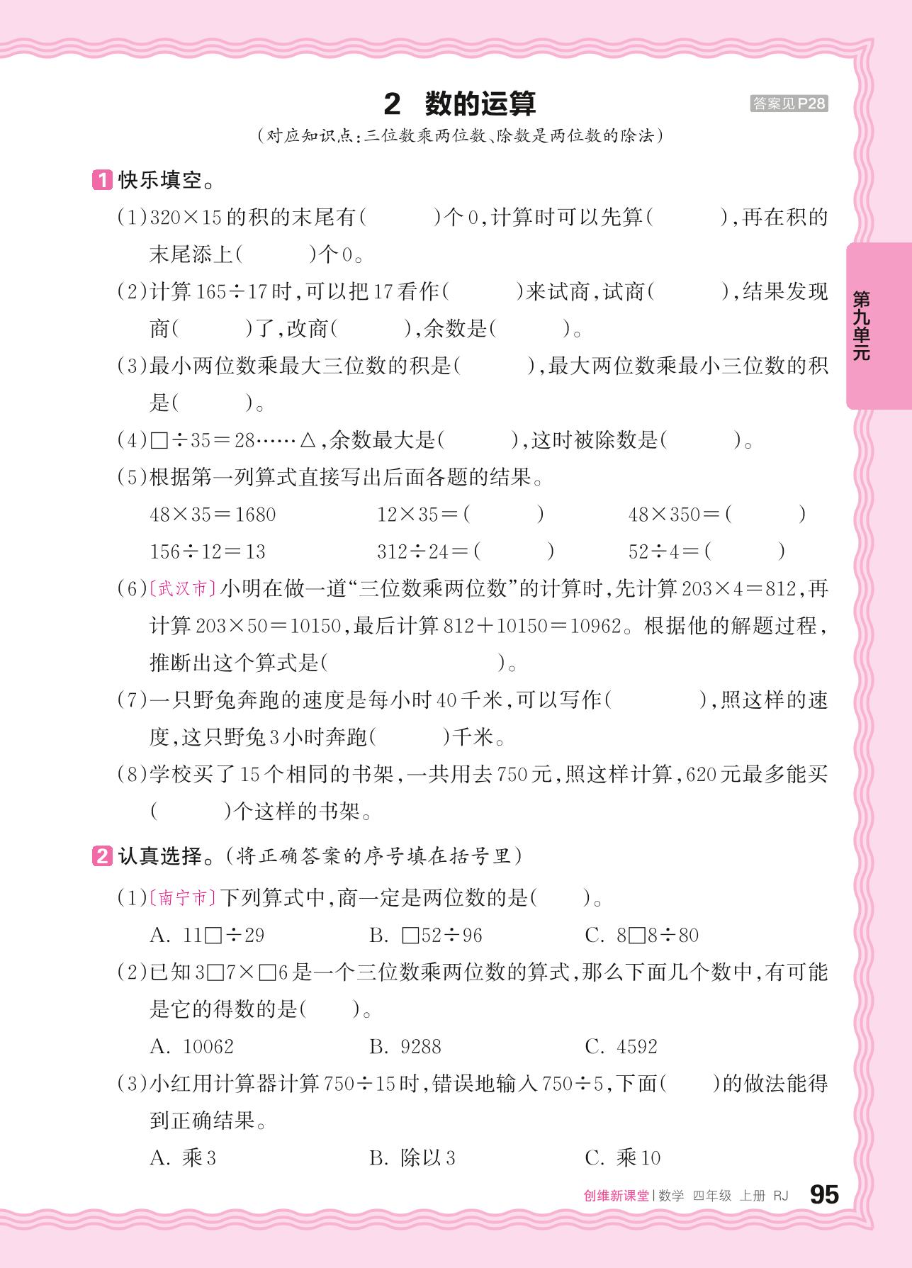 2024秋上册四年级数学人教版 第九单元 总复习——2. 数的运算