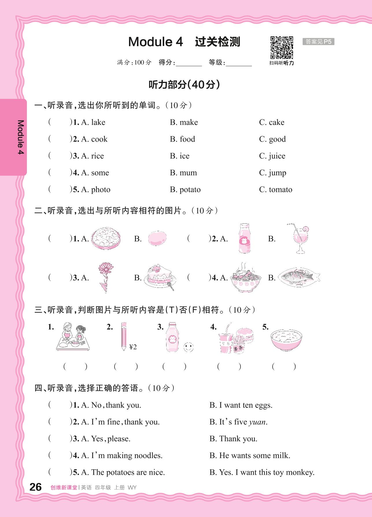 2024秋上册四年级英语外研版(三起始) Module 4 过关检测