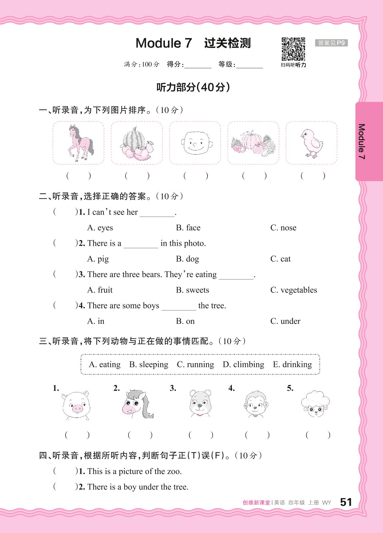 2024秋上册四年级英语外研版(三起始) Module 7 过关检测