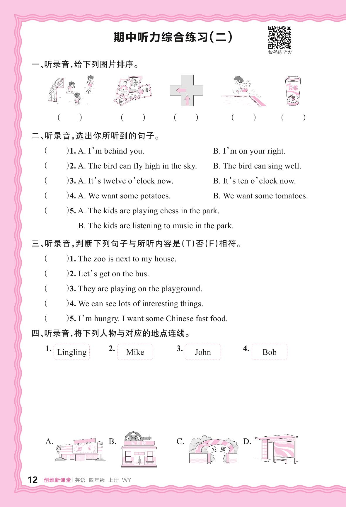 2024秋上册四年级英语外研版(三起始) 期中听力综合练习(二)