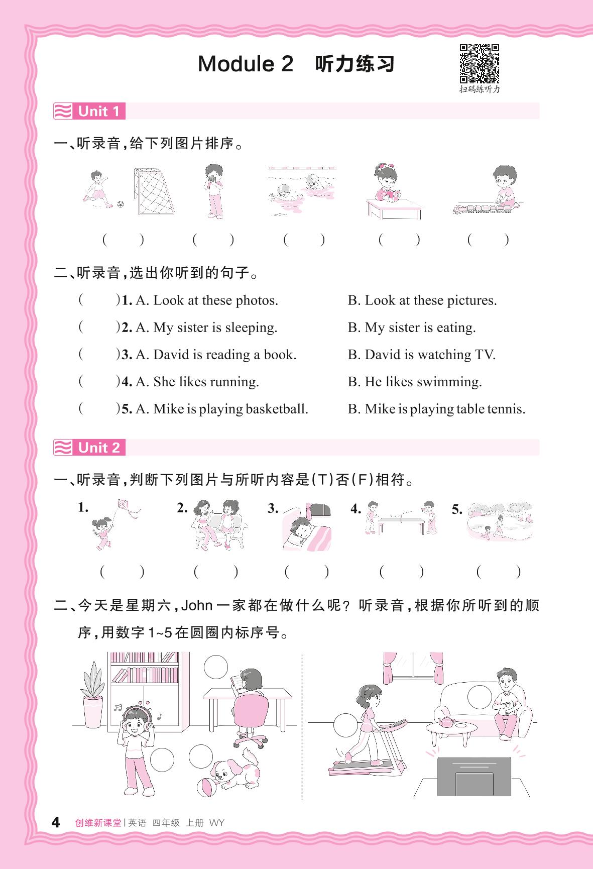 2024秋上册四年级英语外研版(三起始) Module 2 听力练习