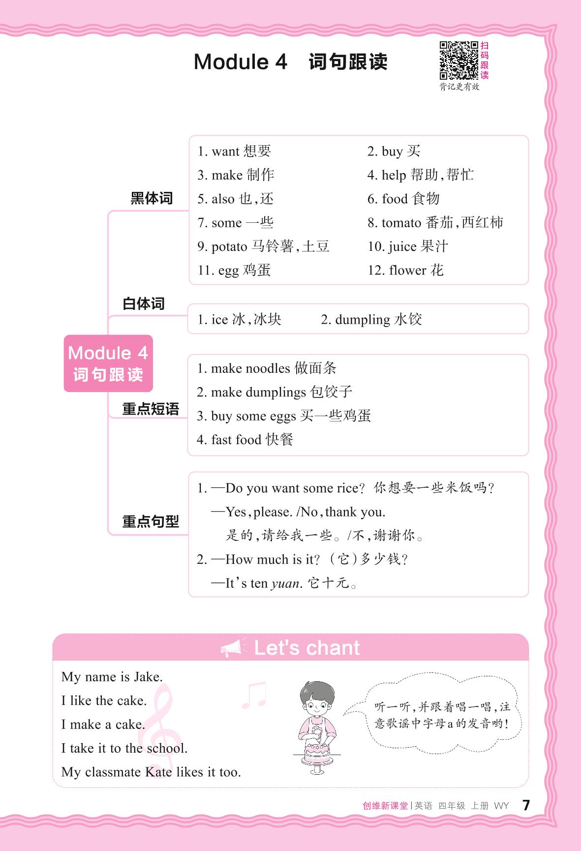 2024秋上册四年级英语外研版(三起始) Module 4 词句跟读