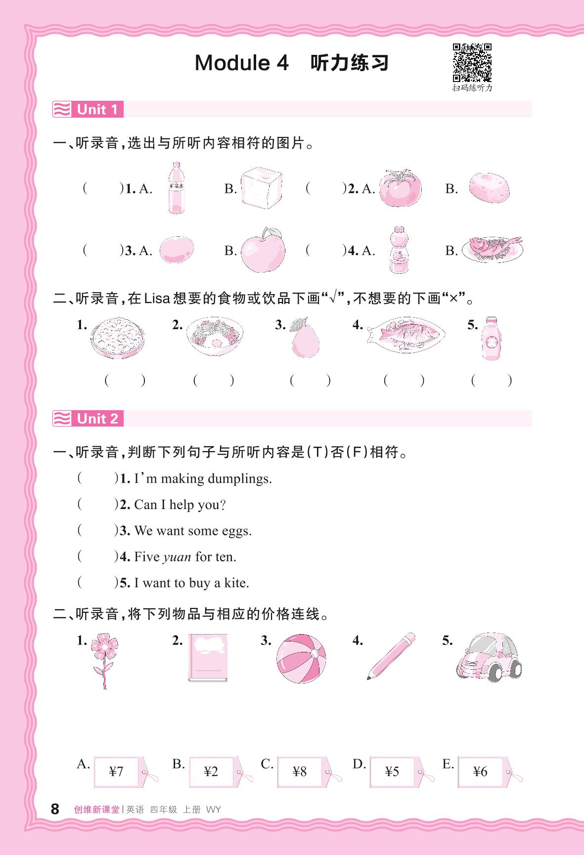 2024秋上册四年级英语外研版(三起始) Module 4 听力练习