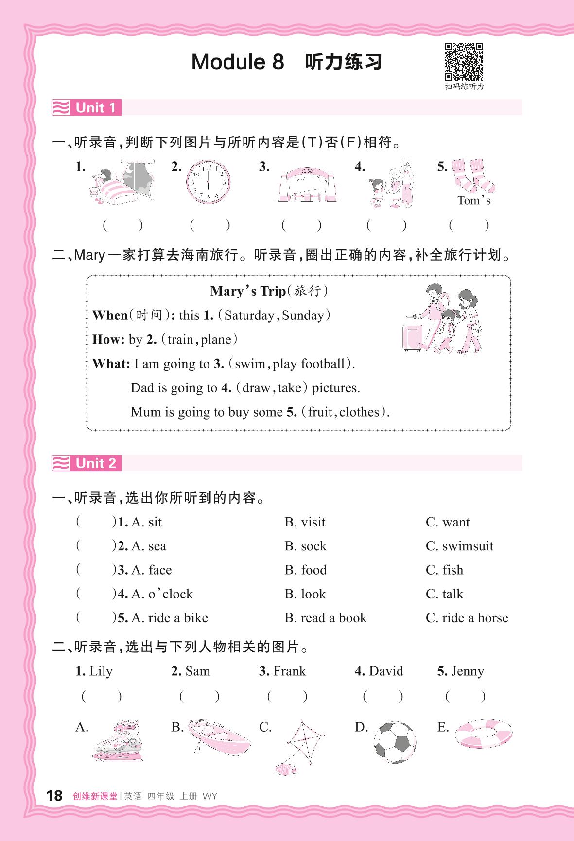 2024秋上册四年级英语外研版(三起始) Module 8 听力练习