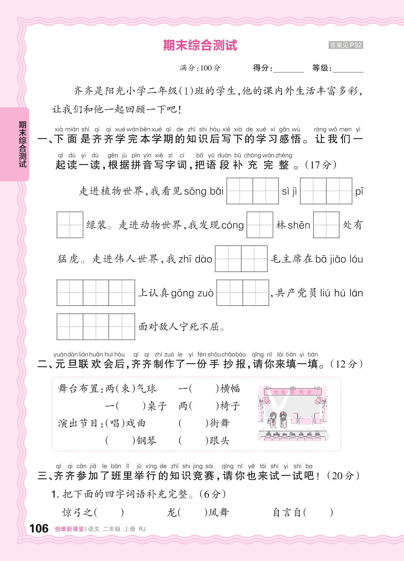 2024秋上册二年级语文人教版 期末综合测试_R240816174058331