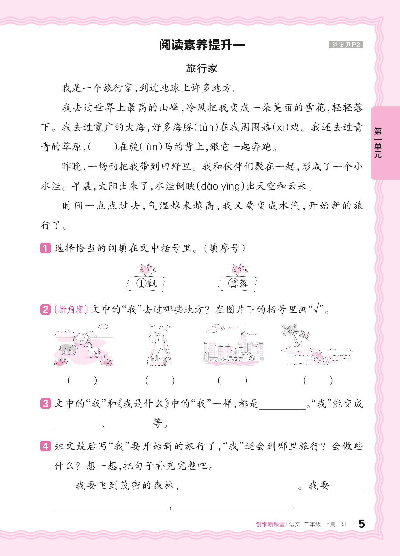2024秋上册二年级语文人教版 第一单元 大自然的秘密——阅读素养提升一