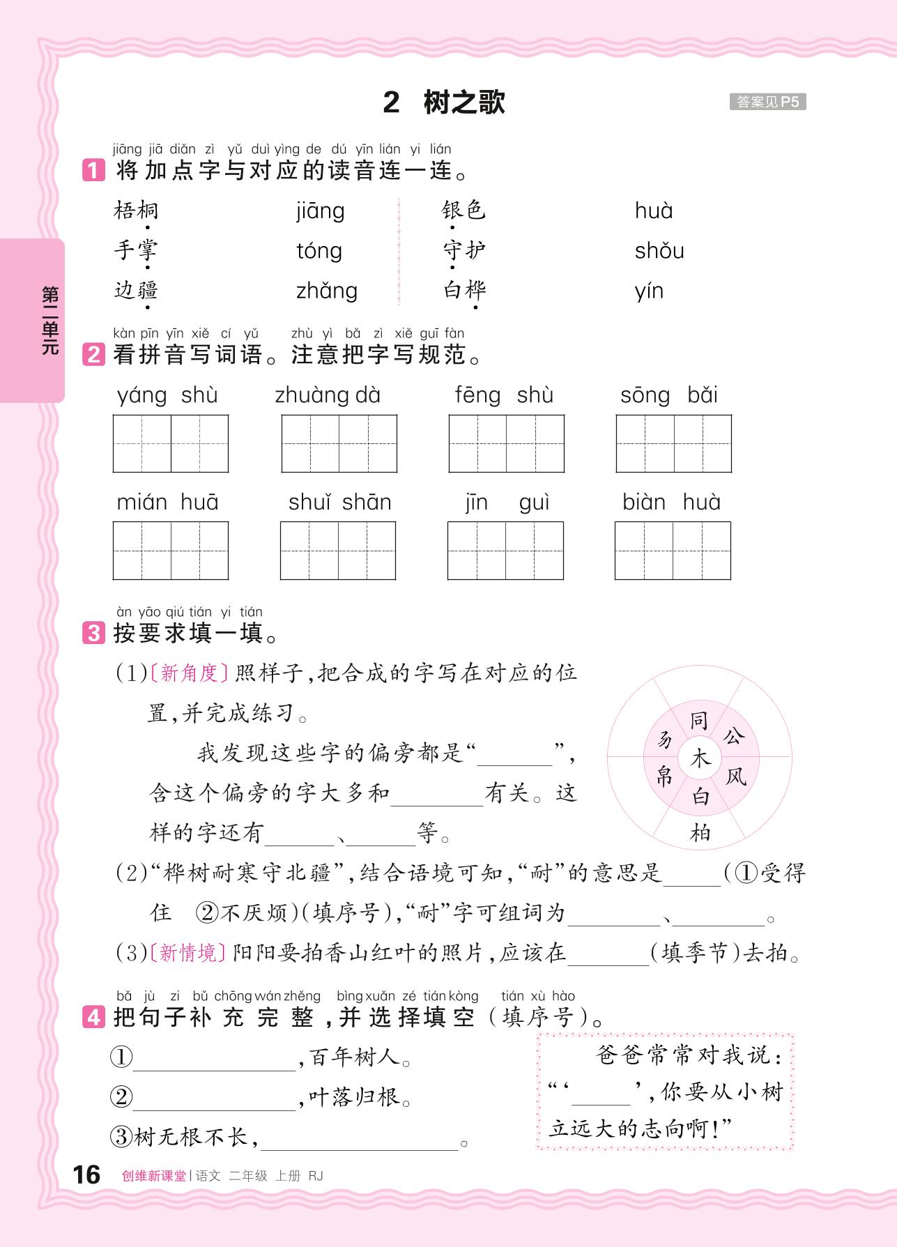 2024秋上册二年级语文人教版 第二单元 识字——2. 树之歌