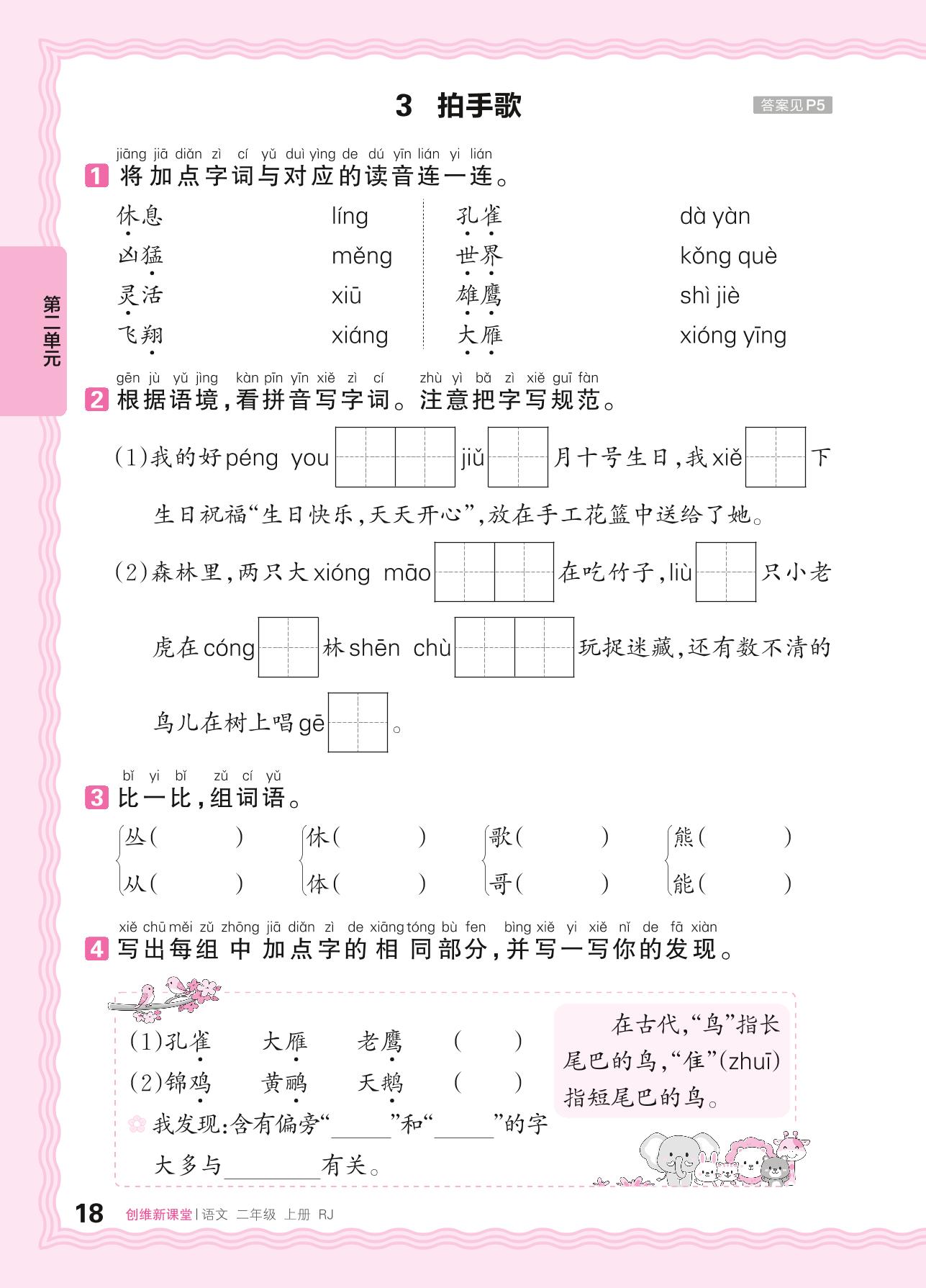 2024秋上册二年级语文人教版 第二单元 识字——3. 拍手歌