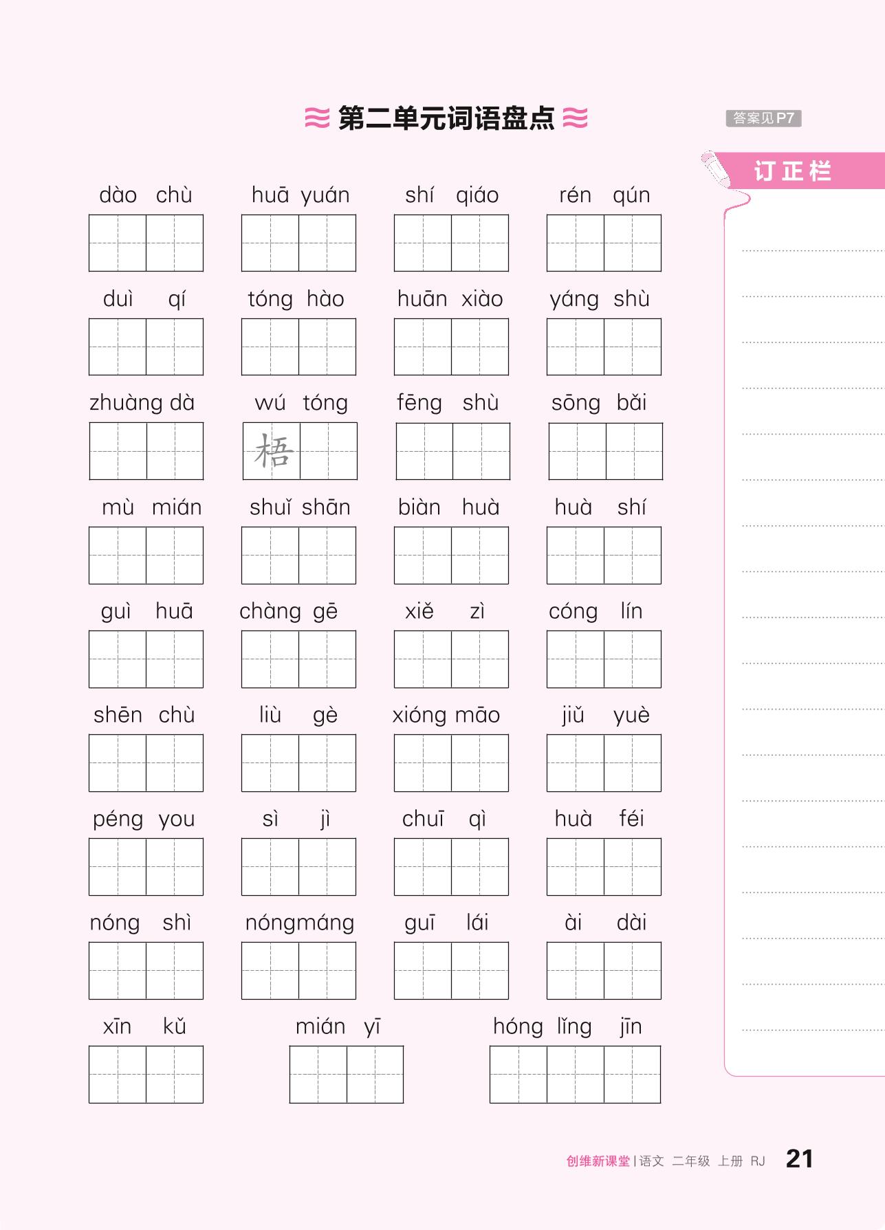 2024秋上册二年级语文人教版 第二单元词语盘点
