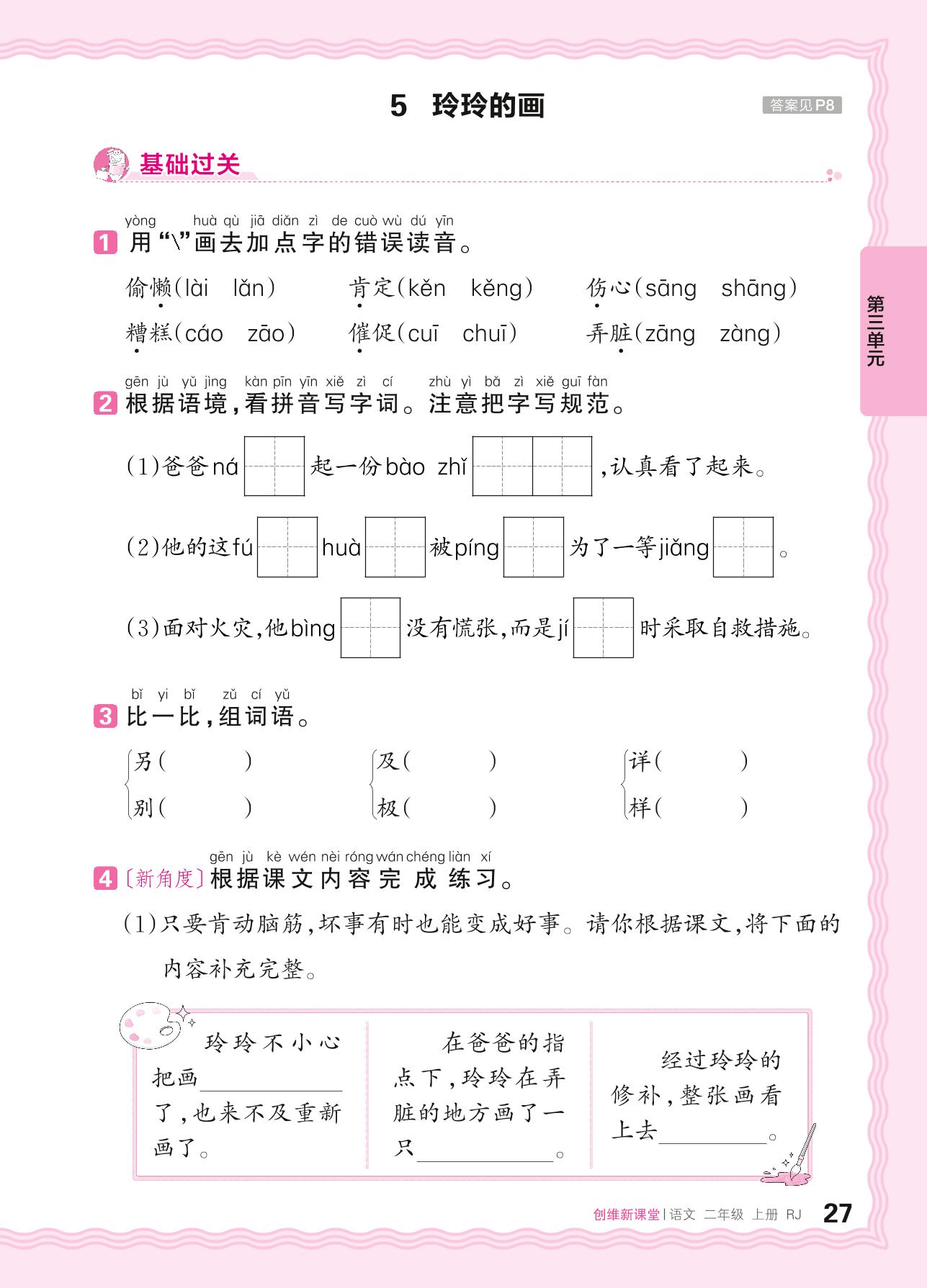 2024秋上册二年级语文人教版 第三单元 儿童生活——5. 玲玲的画