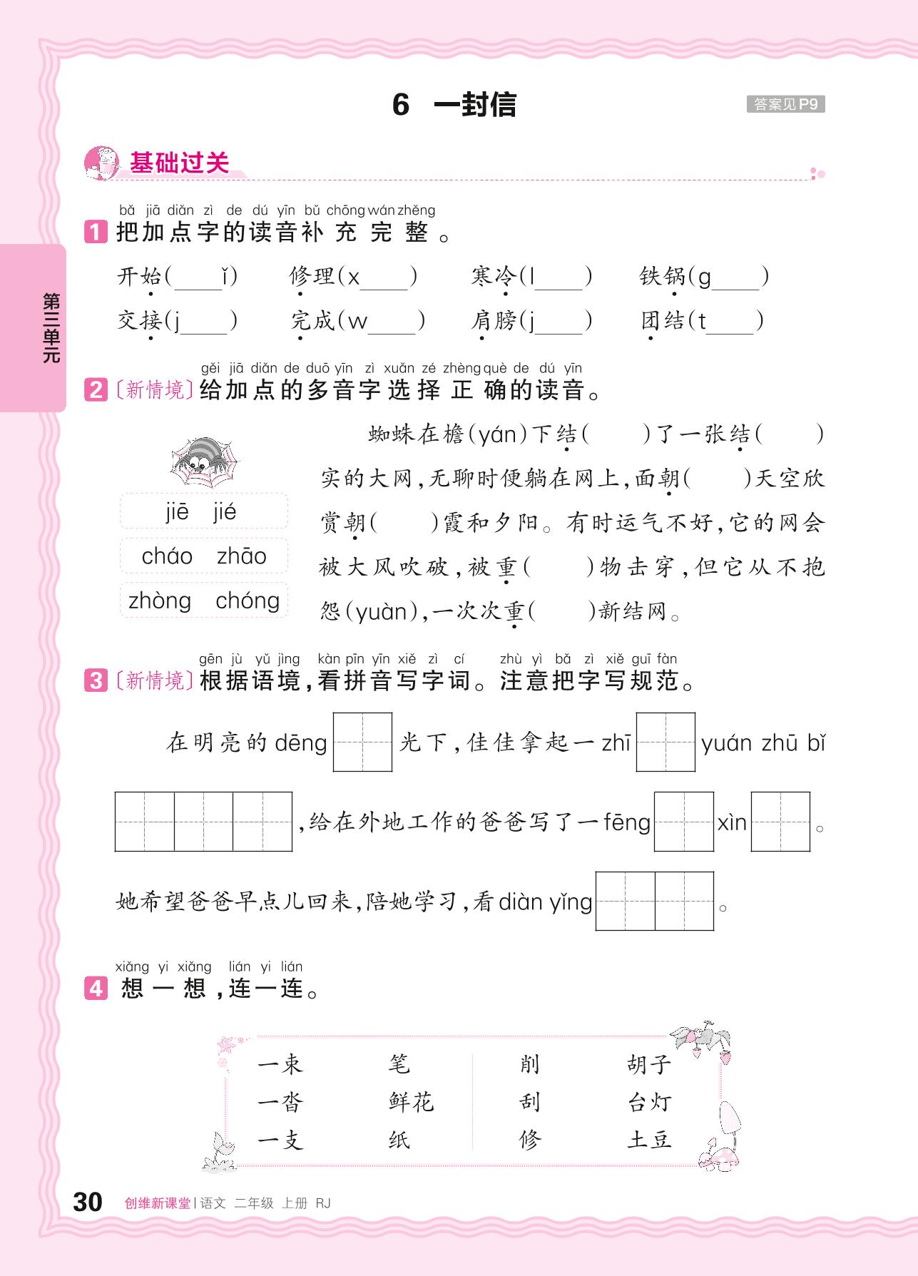 2024秋上册二年级语文人教版 第三单元 儿童生活——6. 一封信