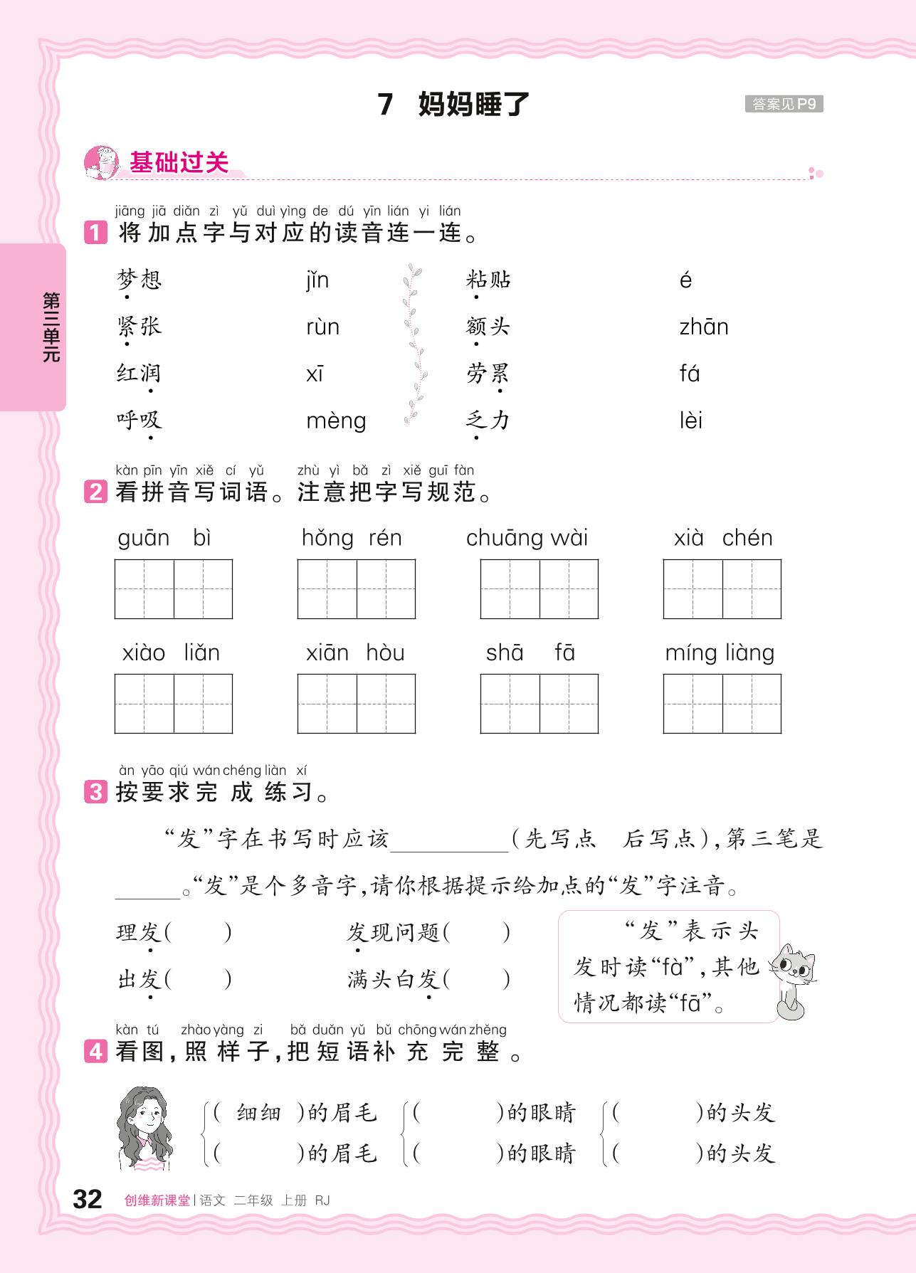 2024秋上册二年级语文人教版 第三单元 儿童生活——7. 妈妈睡了