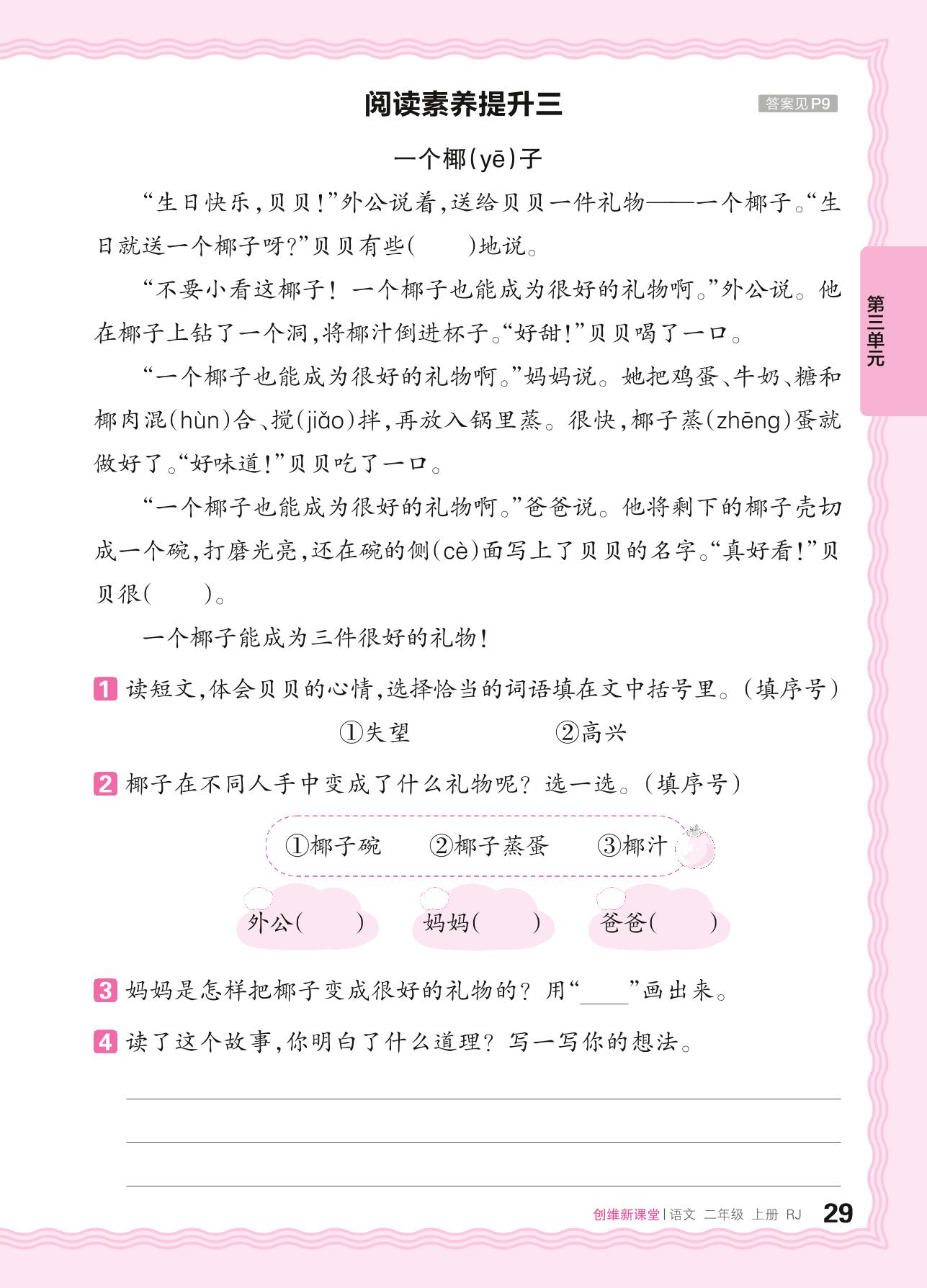 2024秋上册二年级语文人教版 第三单元 儿童生活——阅读素养提升三