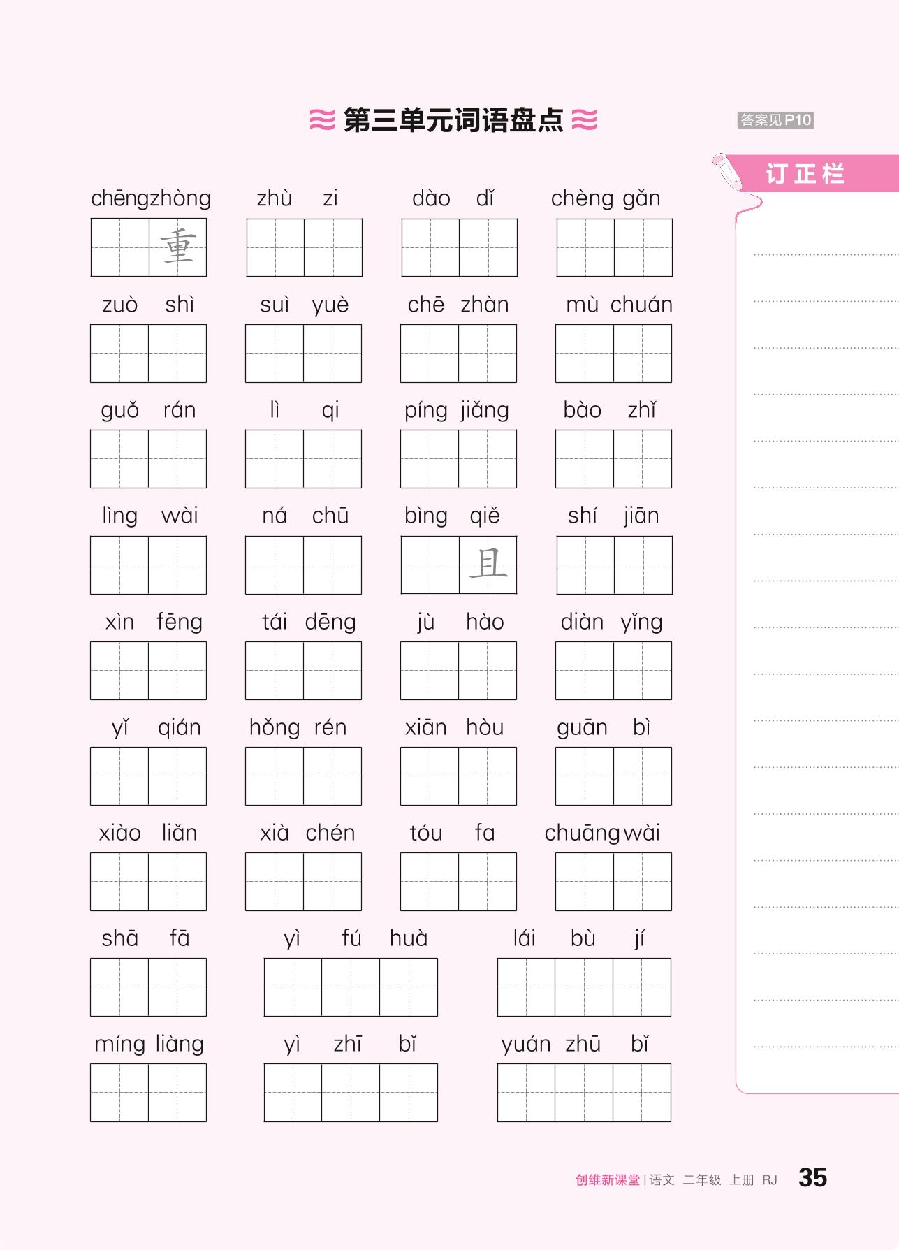 2024秋上册二年级语文人教版 第三单元词语盘点