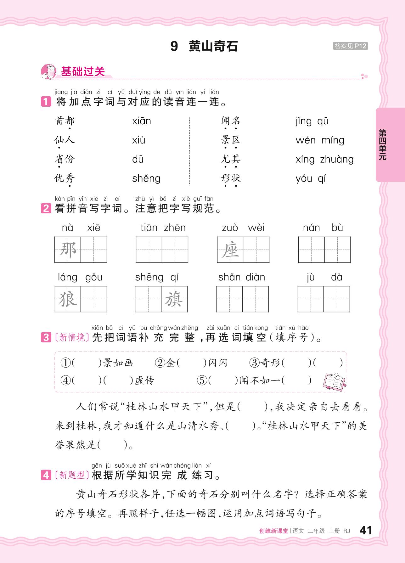 2024秋上册二年级语文人教版 第四单元 家乡——9. 黄山奇石