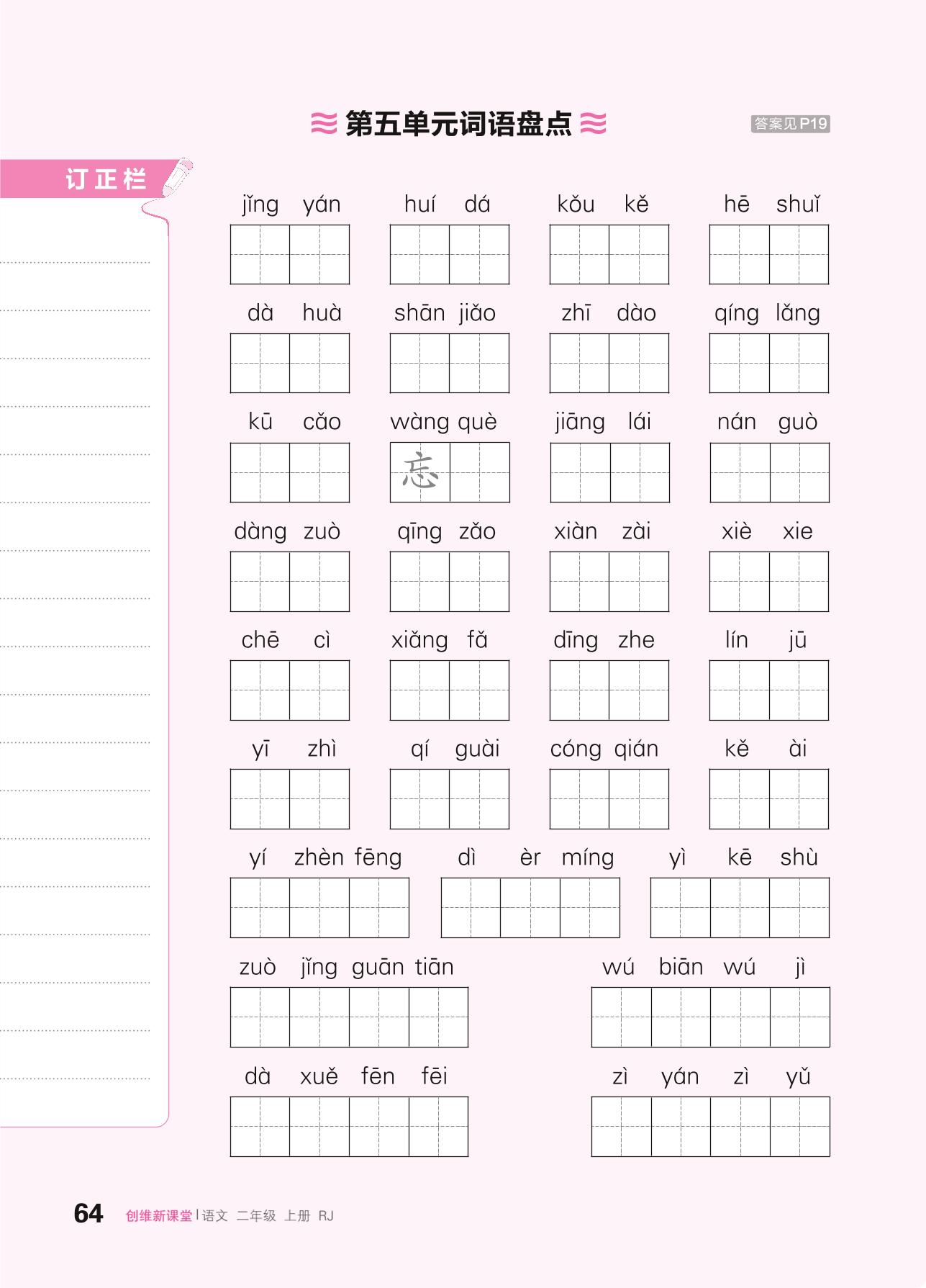 2024秋上册二年级语文人教版 第五单元词语盘点