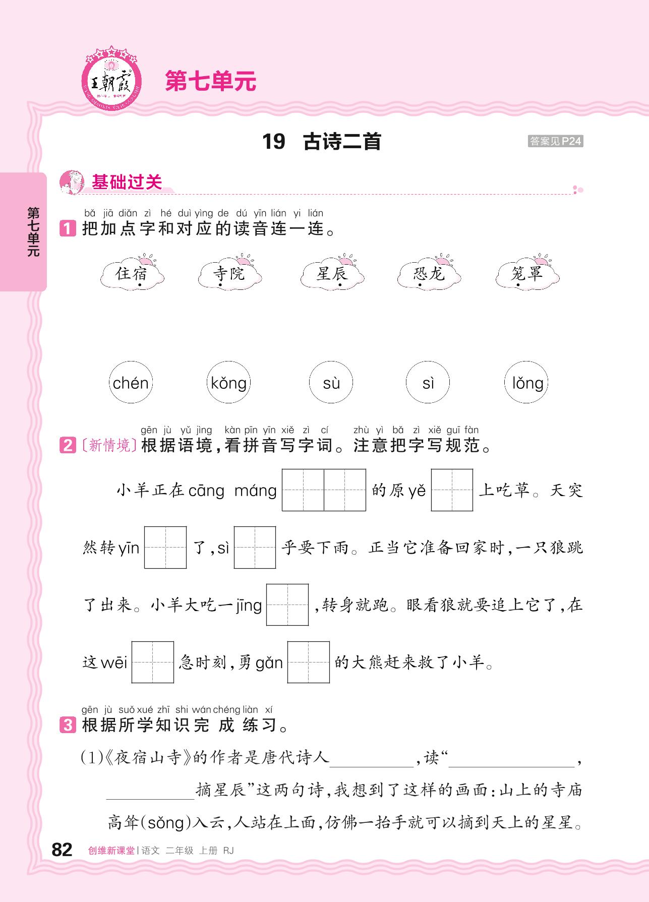 2024秋上册二年级语文人教版 第七单元 想象——19. 古诗二首_R240828115420220