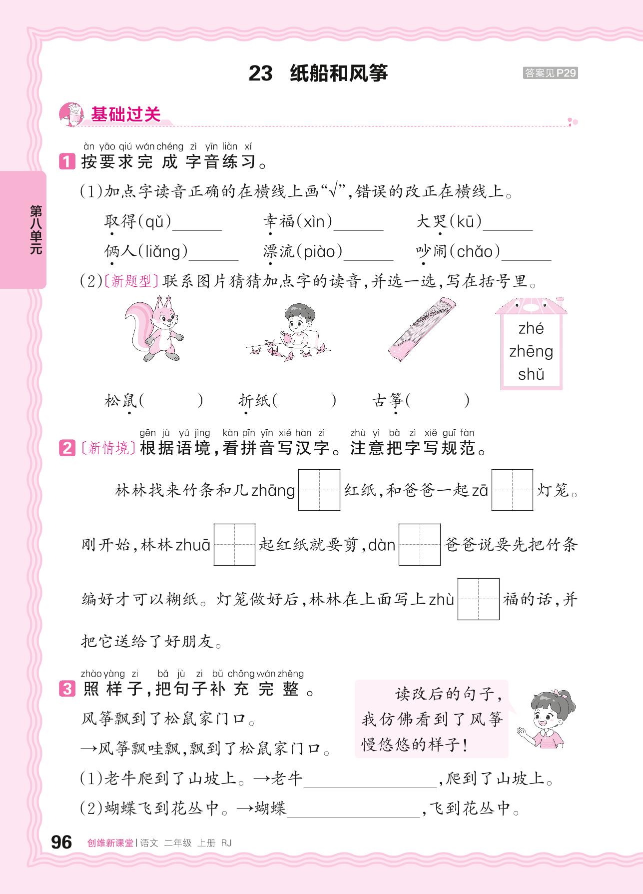 2024秋上册二年级语文人教版 第八单元 相处——23. 纸船和风筝_R240828115424396