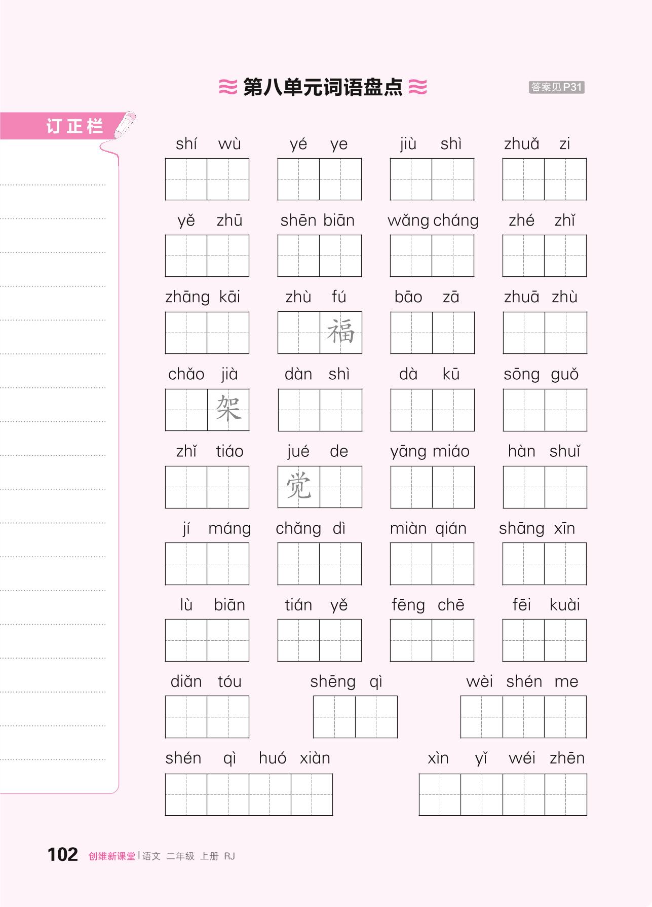 2024秋上册二年级语文人教版 第八单元词语盘点