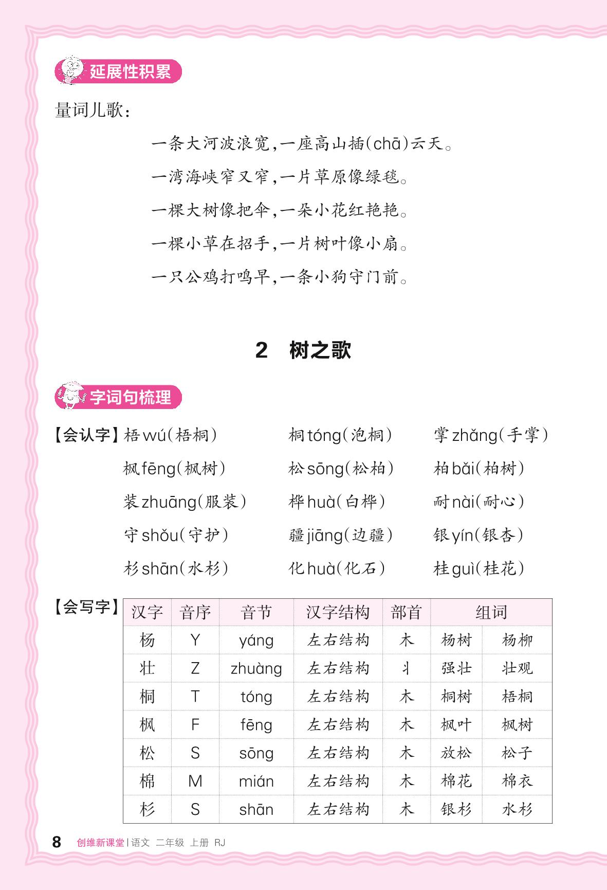 2024秋上册二年级语文人教版 助学手册 第二单元——2. 树之歌