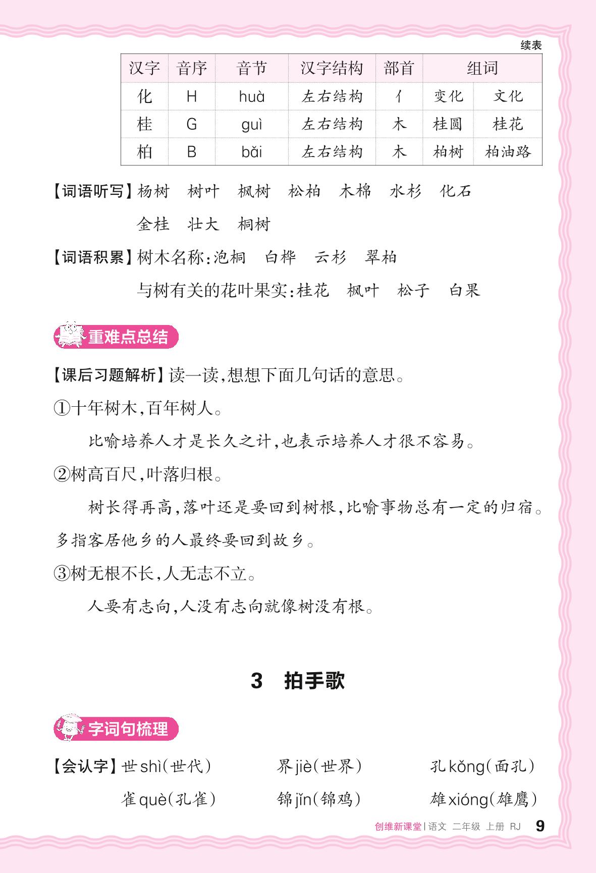 2024秋上册二年级语文人教版 助学手册 第二单元——3. 拍手歌