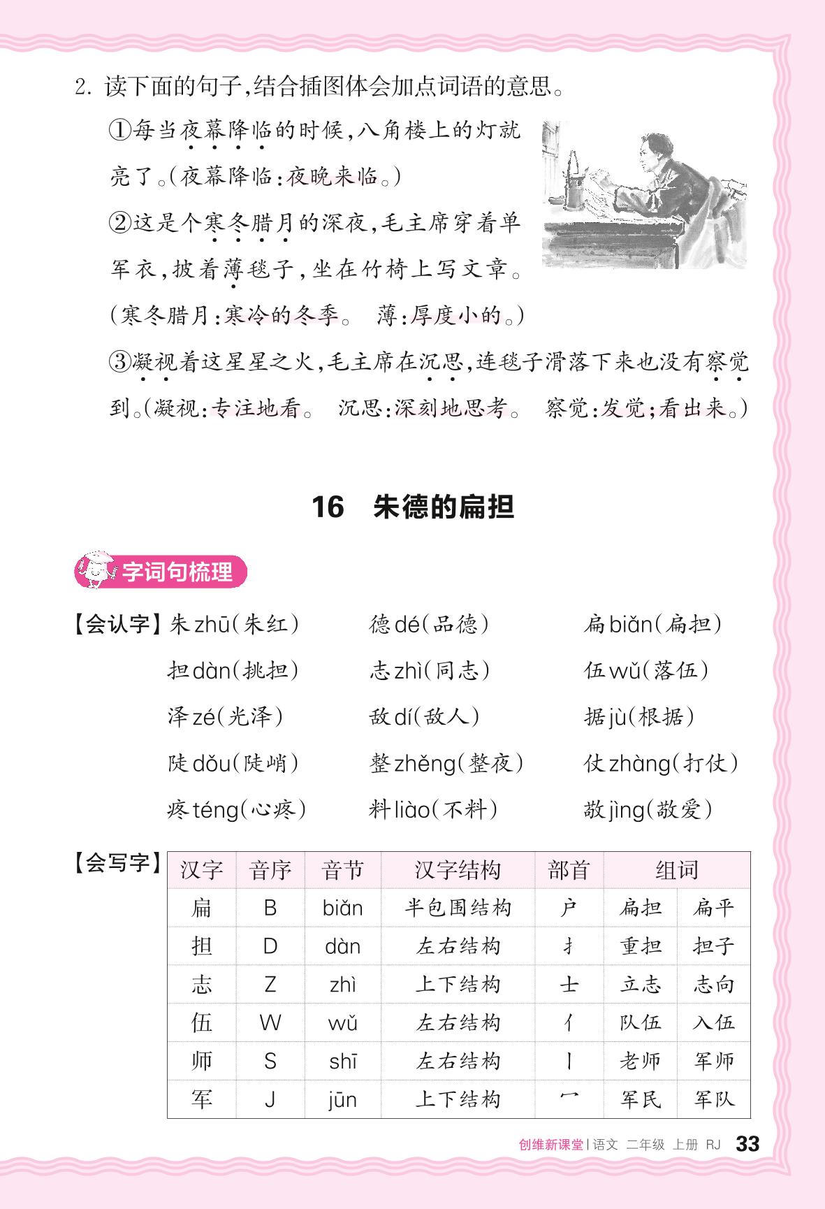 2024秋上册二年级语文人教版 助学手册 第六单元——16. 朱德的扁担