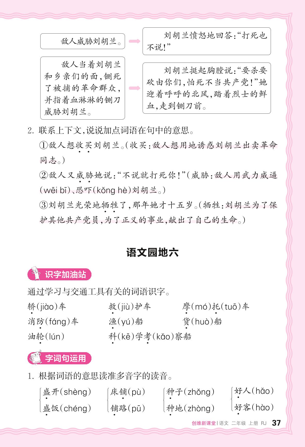 2024秋上册二年级语文人教版 助学手册 第六单元——语文园地六