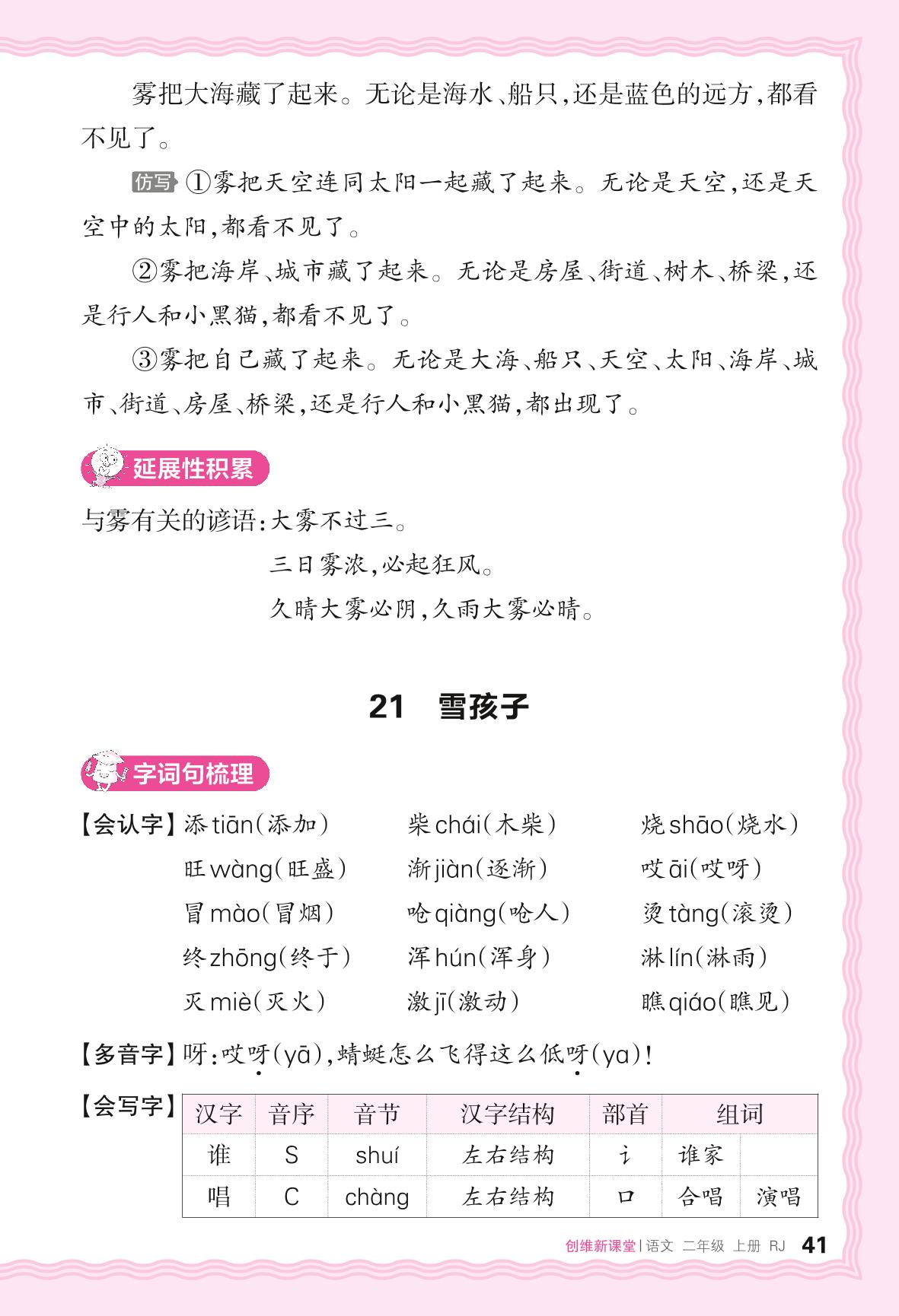 2024秋上册二年级语文人教版 助学手册 第七单元——21. 雪孩子