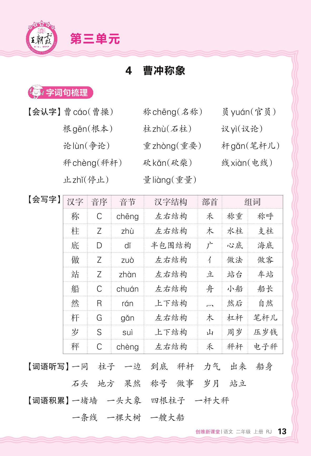 2024秋上册二年级语文人教版 助学手册 第三单元——4. 曹冲称象
