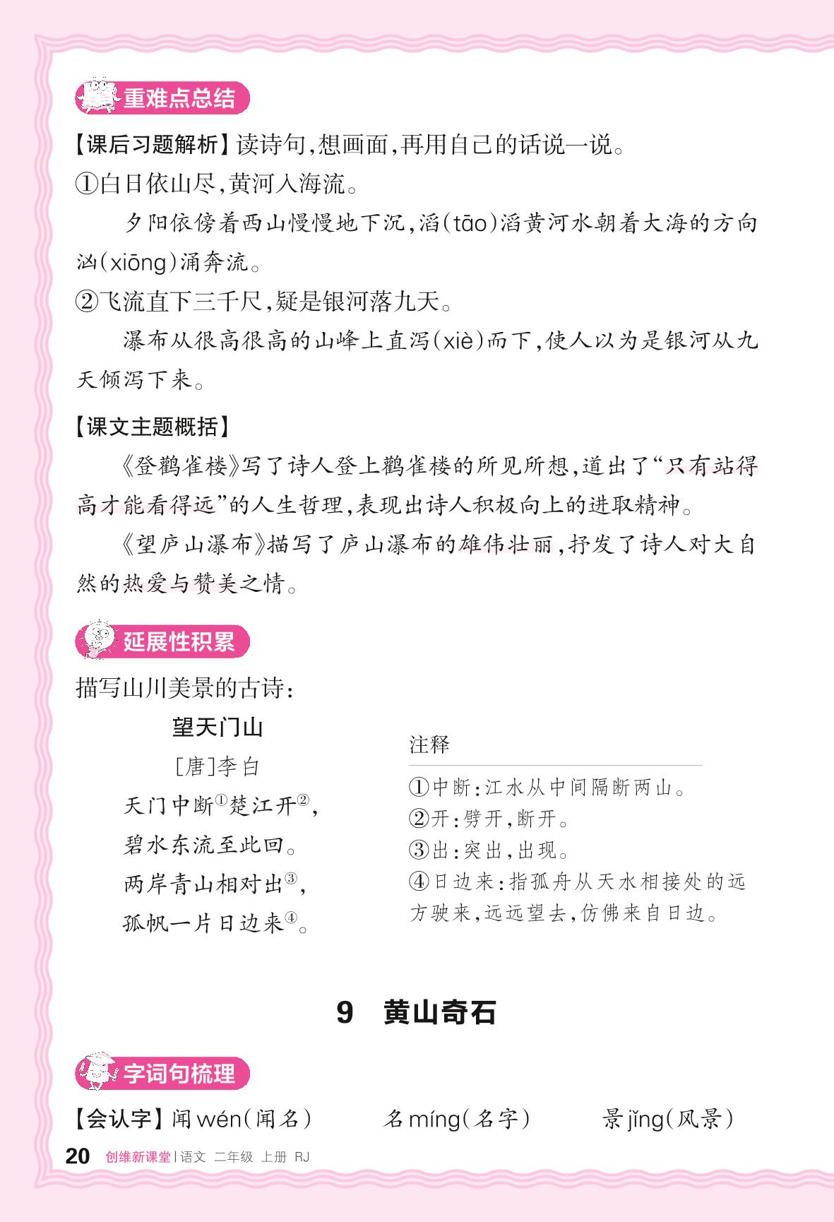 2024秋上册二年级语文人教版 助学手册 第四单元——9. 黄山奇石