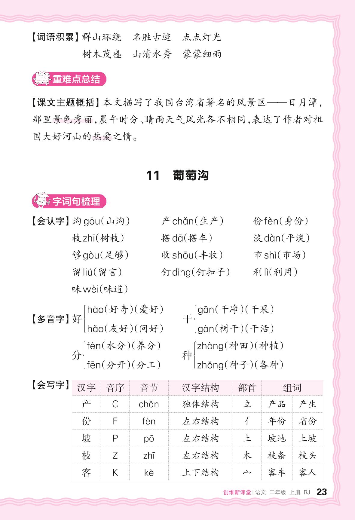 2024秋上册二年级语文人教版 助学手册 第四单元——11. 葡萄沟