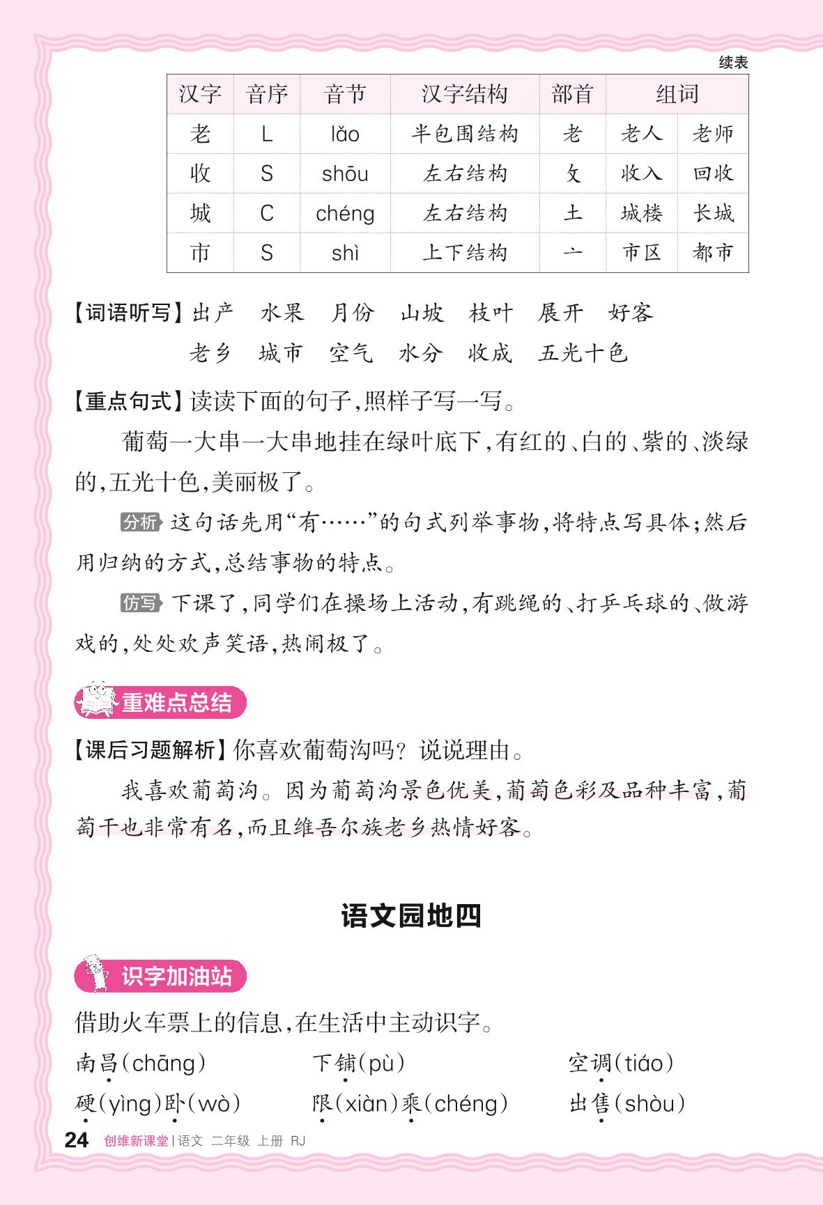 2024秋上册二年级语文人教版 助学手册 第四单元——语文园地四