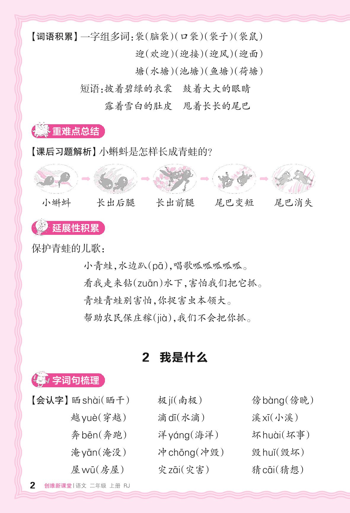 2024秋上册二年级语文人教版 助学手册 第一单元——2. 我是什么