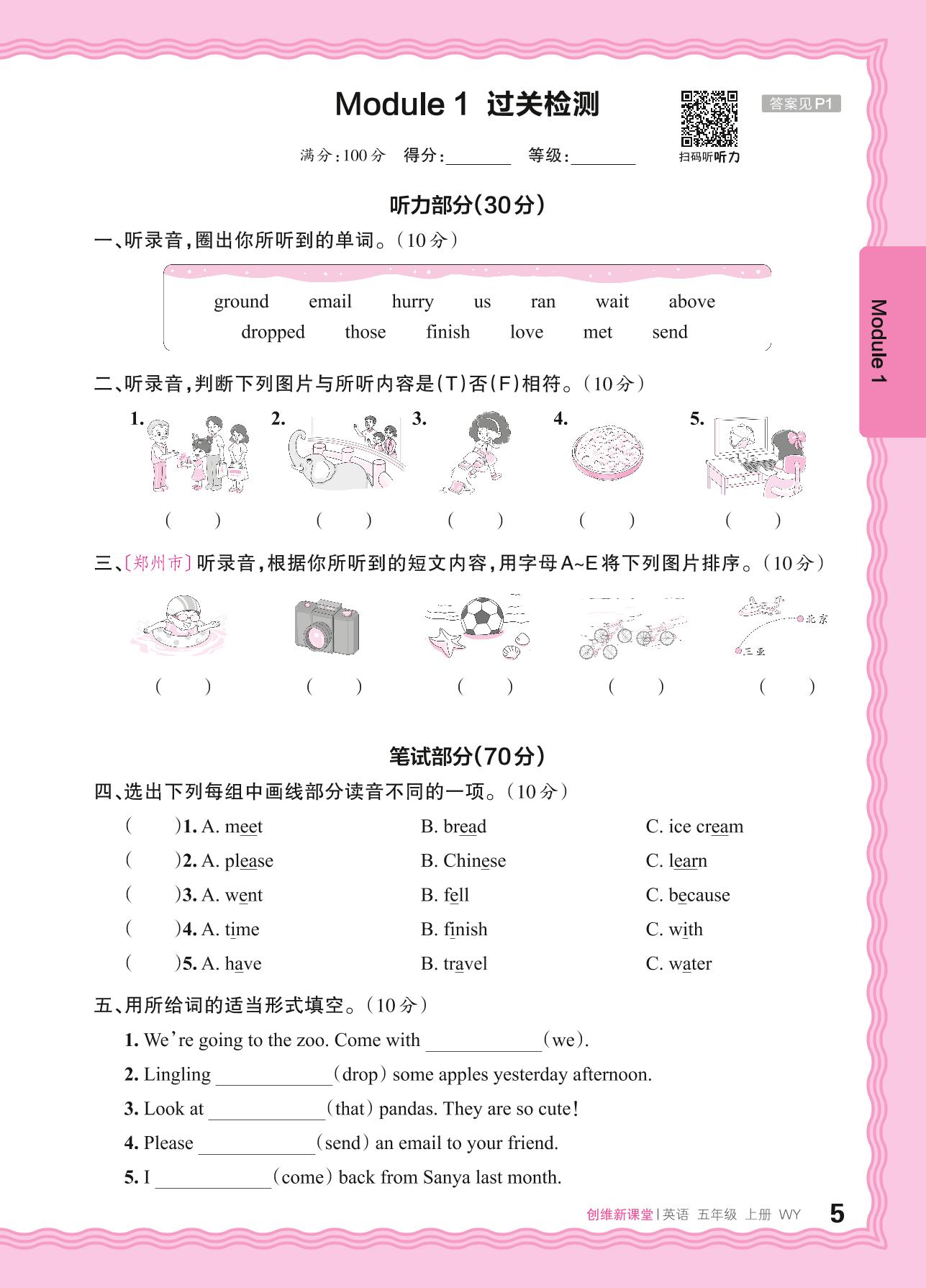 2024秋上册五年级英语外研版(三起始) Module 1 过关检测
