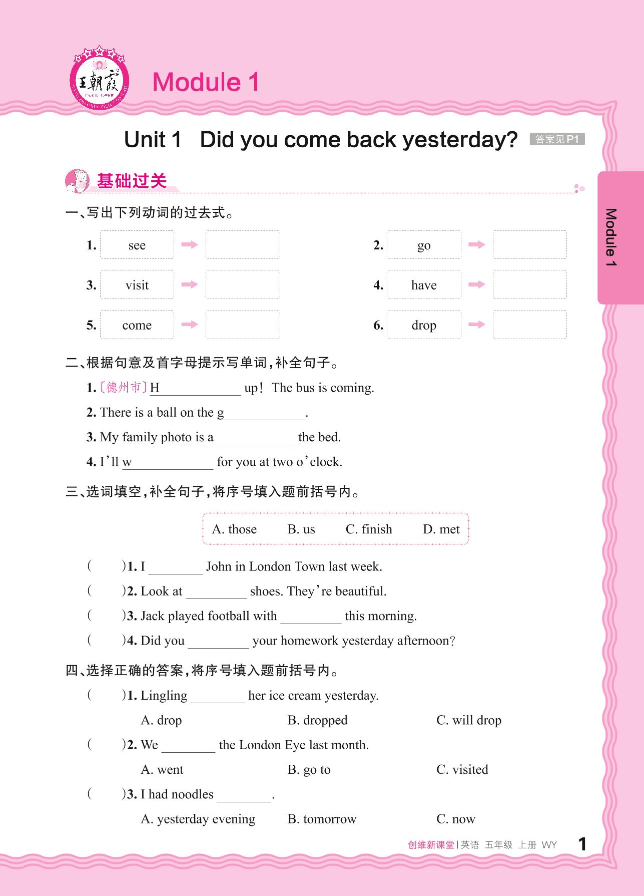 2024秋上册五年级英语外研版(三起始) Module 1—Unit 1 Did you come back yesterday?