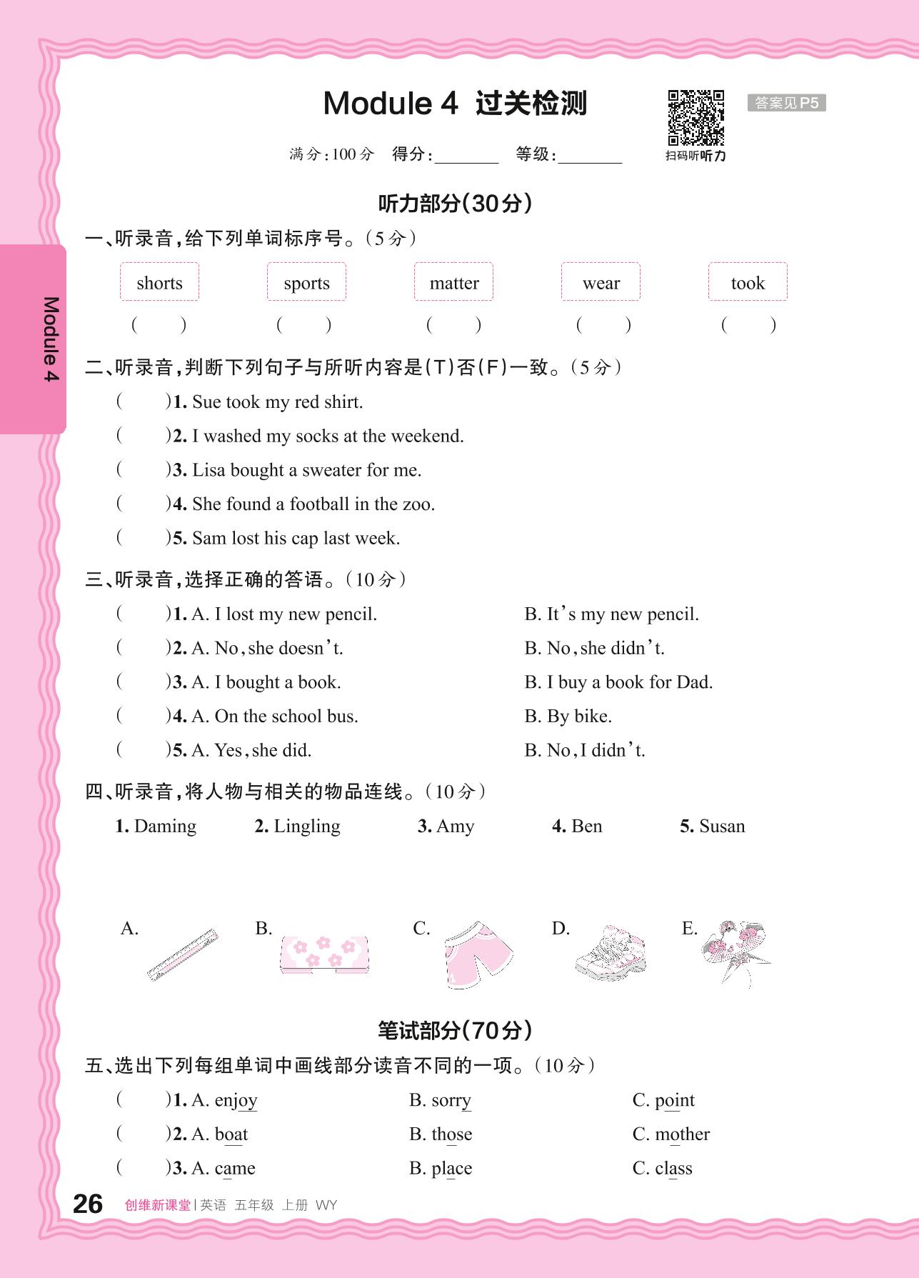 2024秋上册五年级英语外研版(三起始) Module 4 过关检测