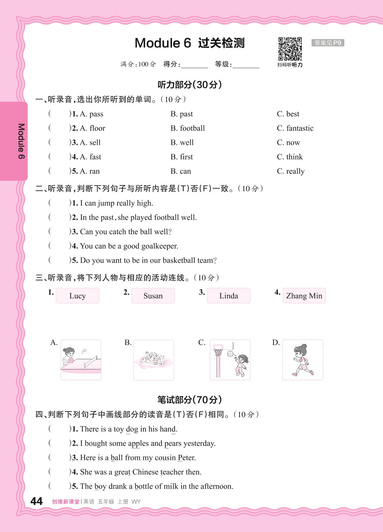 2024秋上册五年级英语外研版(三起始) Module 6 过关检测