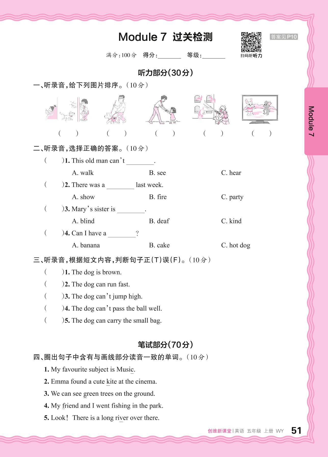 2024秋上册五年级英语外研版(三起始) Module 7 过关检测