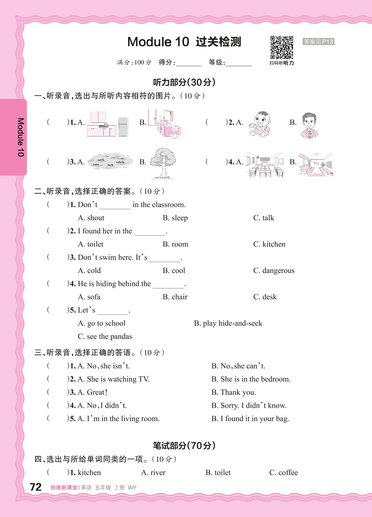 2024秋上册五年级英语外研版(三起始) Module 10 过关检测