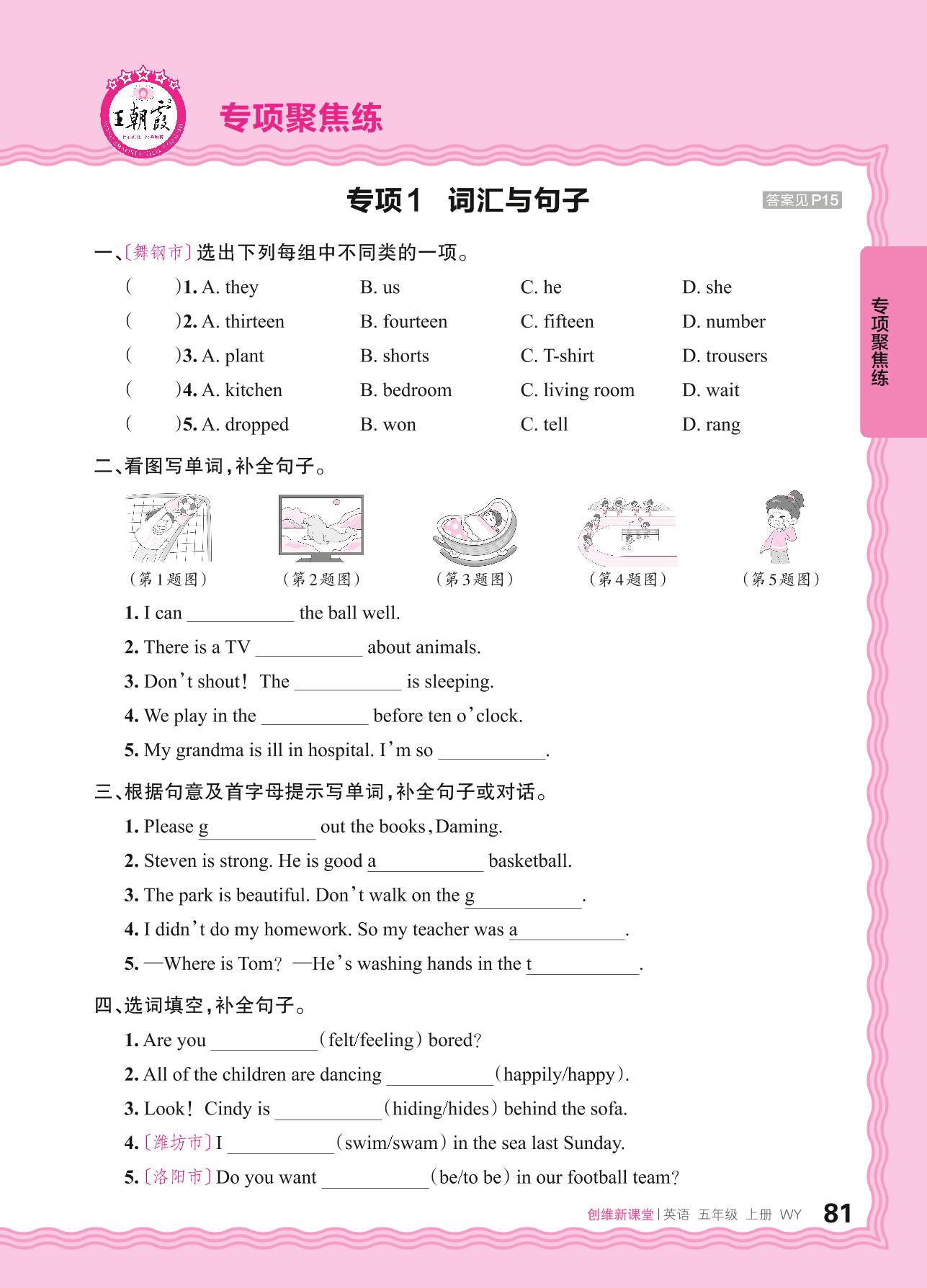 2024秋上册五年级英语外研版(三起始) 期末专项聚焦练——词汇与句子【1】