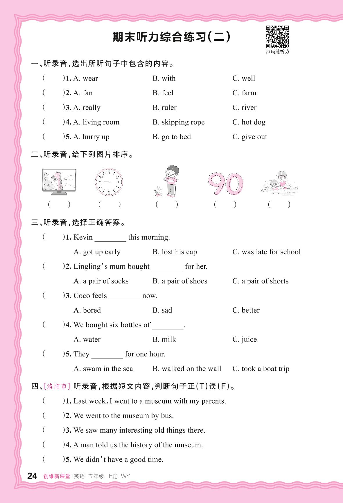 2024秋上册五年级英语外研版(三起始) 期末听力综合练习(二)