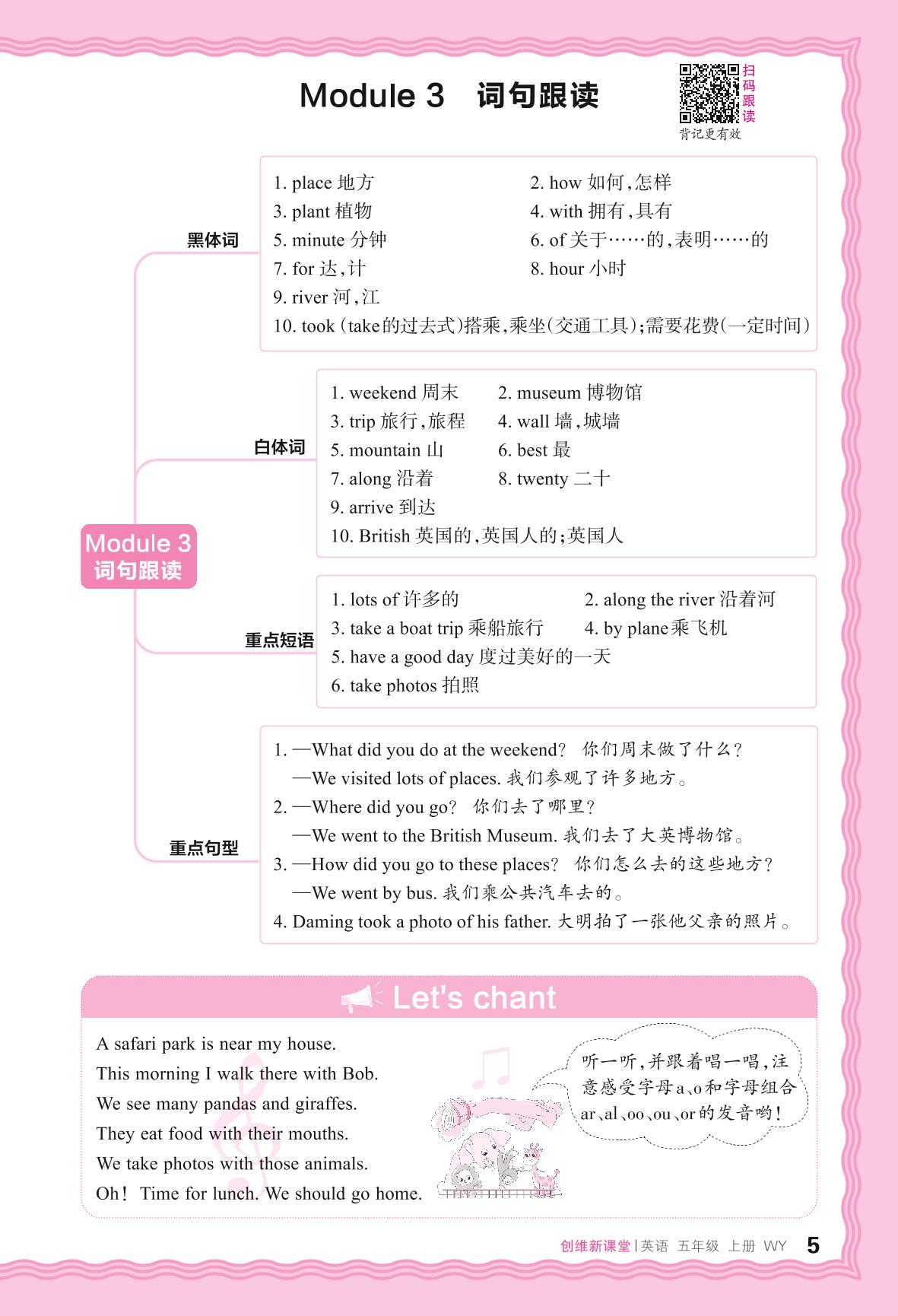 2024秋上册五年级英语外研版(三起始) Module 3 词句跟读