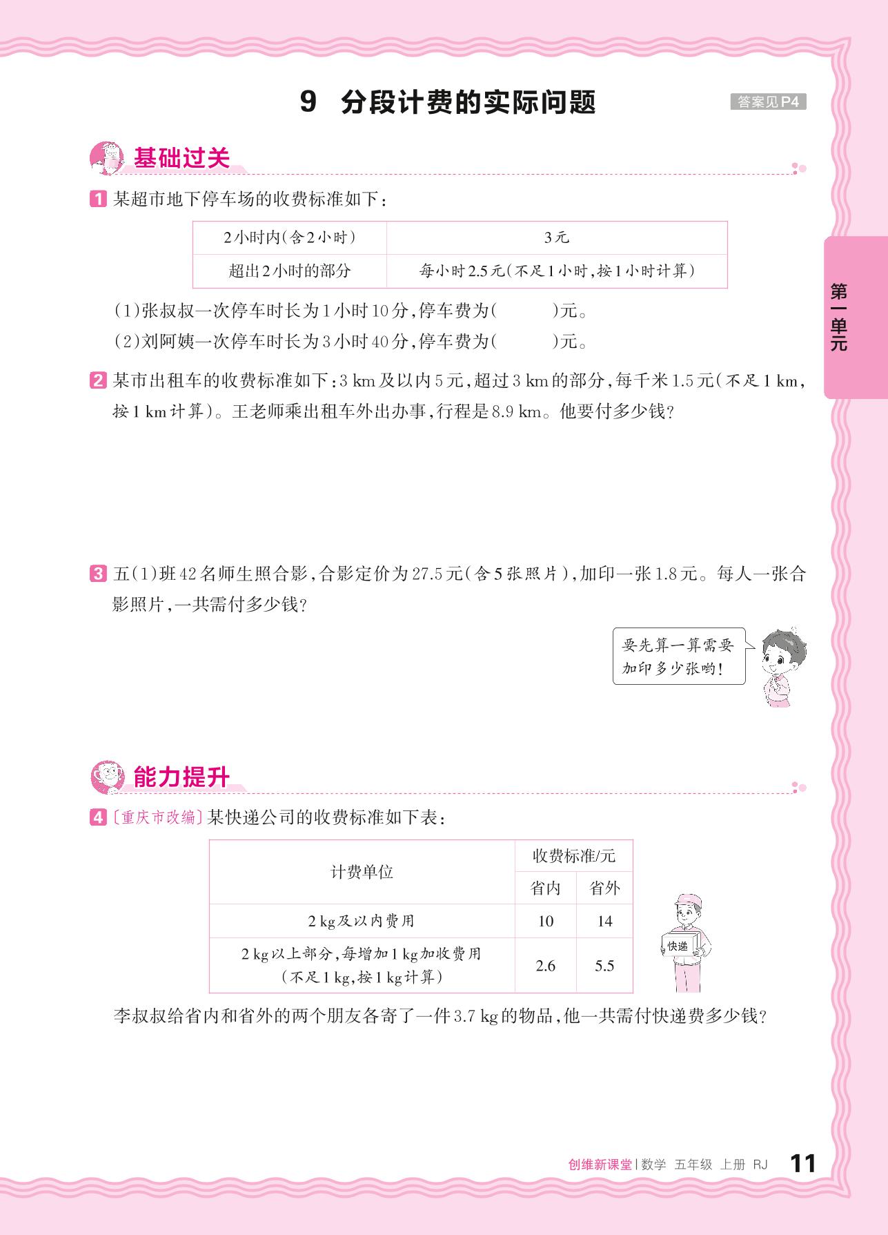 2024秋上册五年级数学人教版 第一单元 小数乘法——9. 分段计费的实际问题