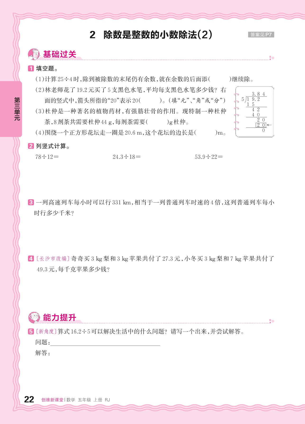 2024秋上册五年级数学人教版 第三单元 小数除法——2. 除数是整数的小数除法(2)