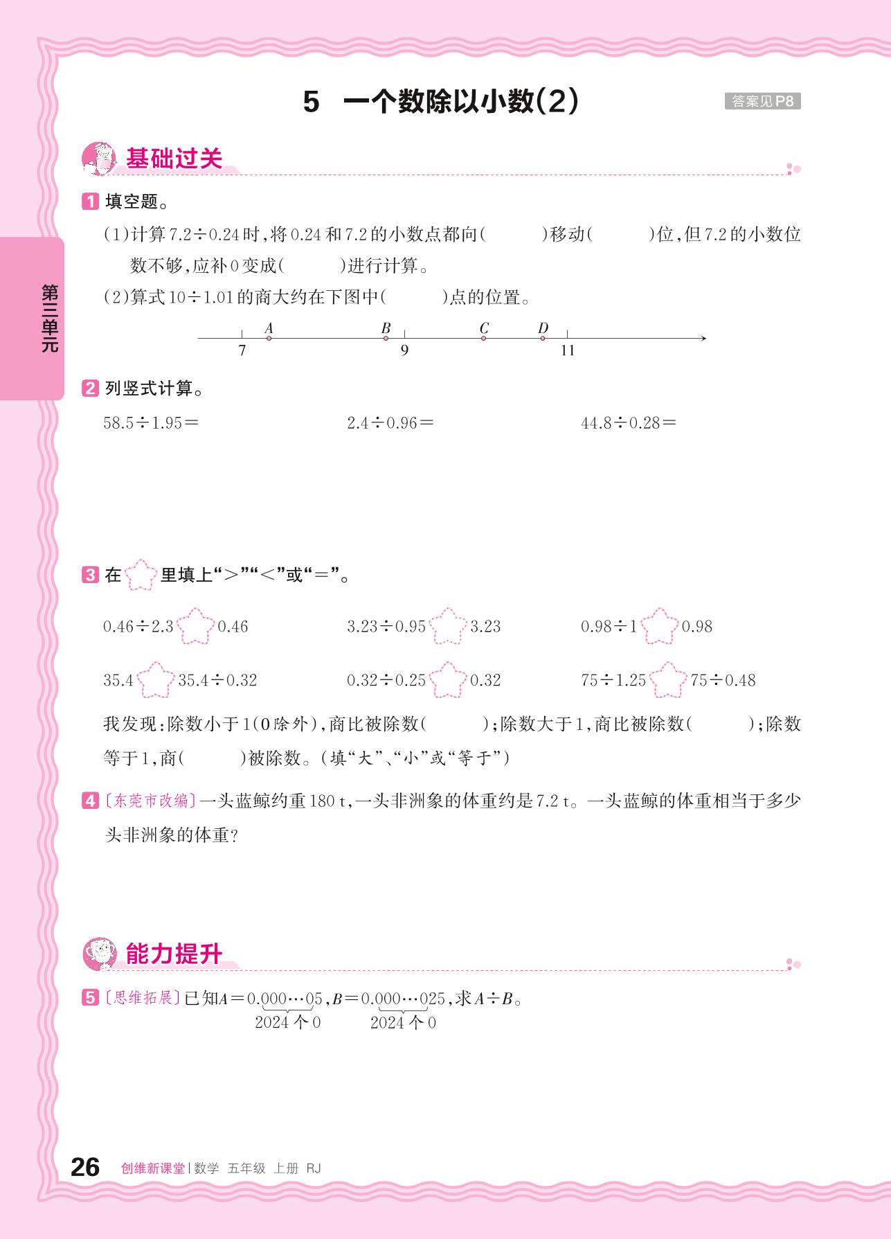 2024秋上册五年级数学人教版 第三单元 小数除法——5. 一个数除以小数(2)