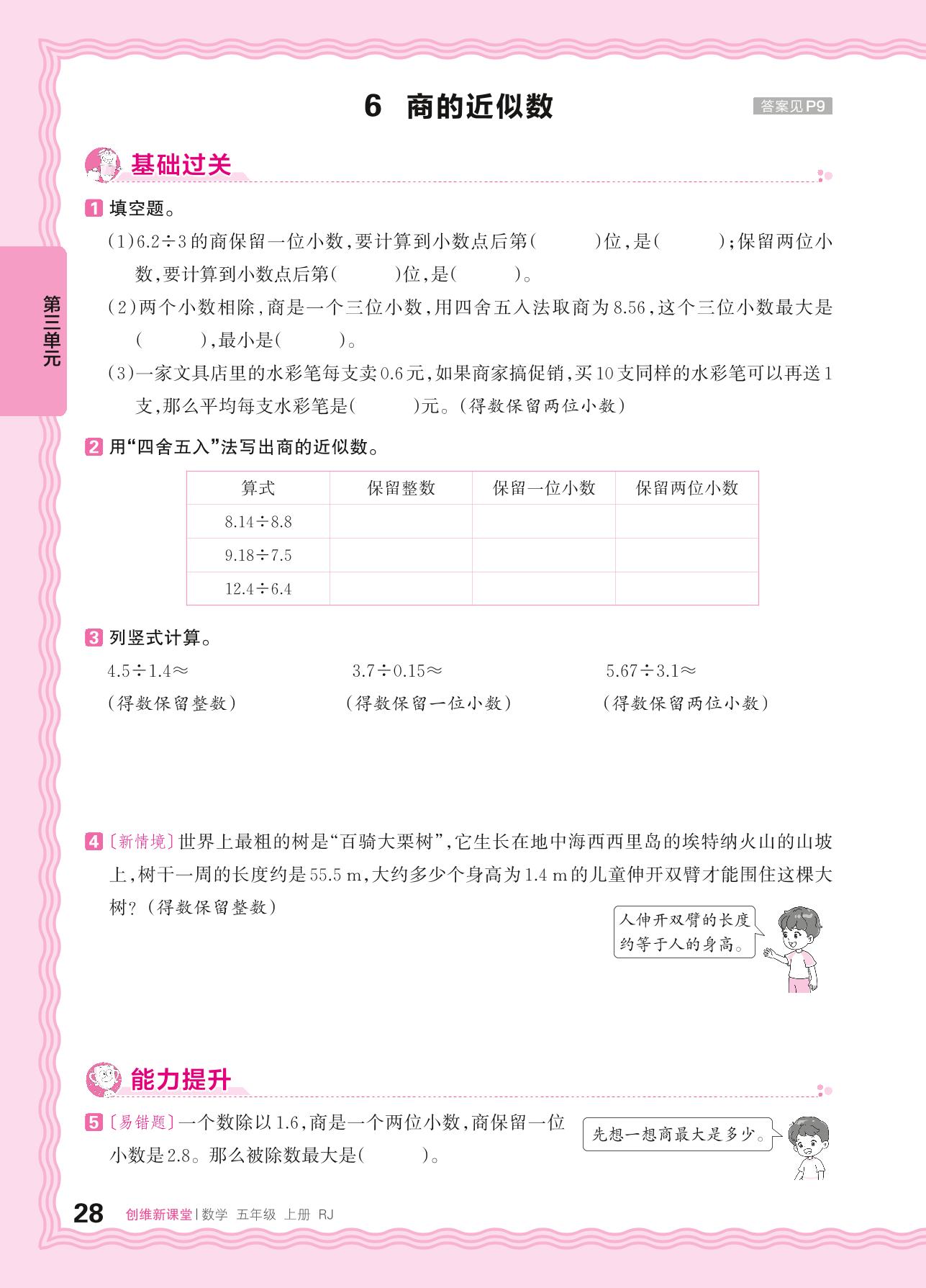2024秋上册五年级数学人教版 第三单元 小数除法——6. 商的近似数