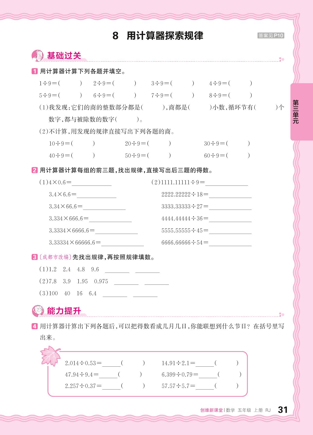 2024秋上册五年级数学人教版 第三单元 小数除法——8. 用计算器探索规律