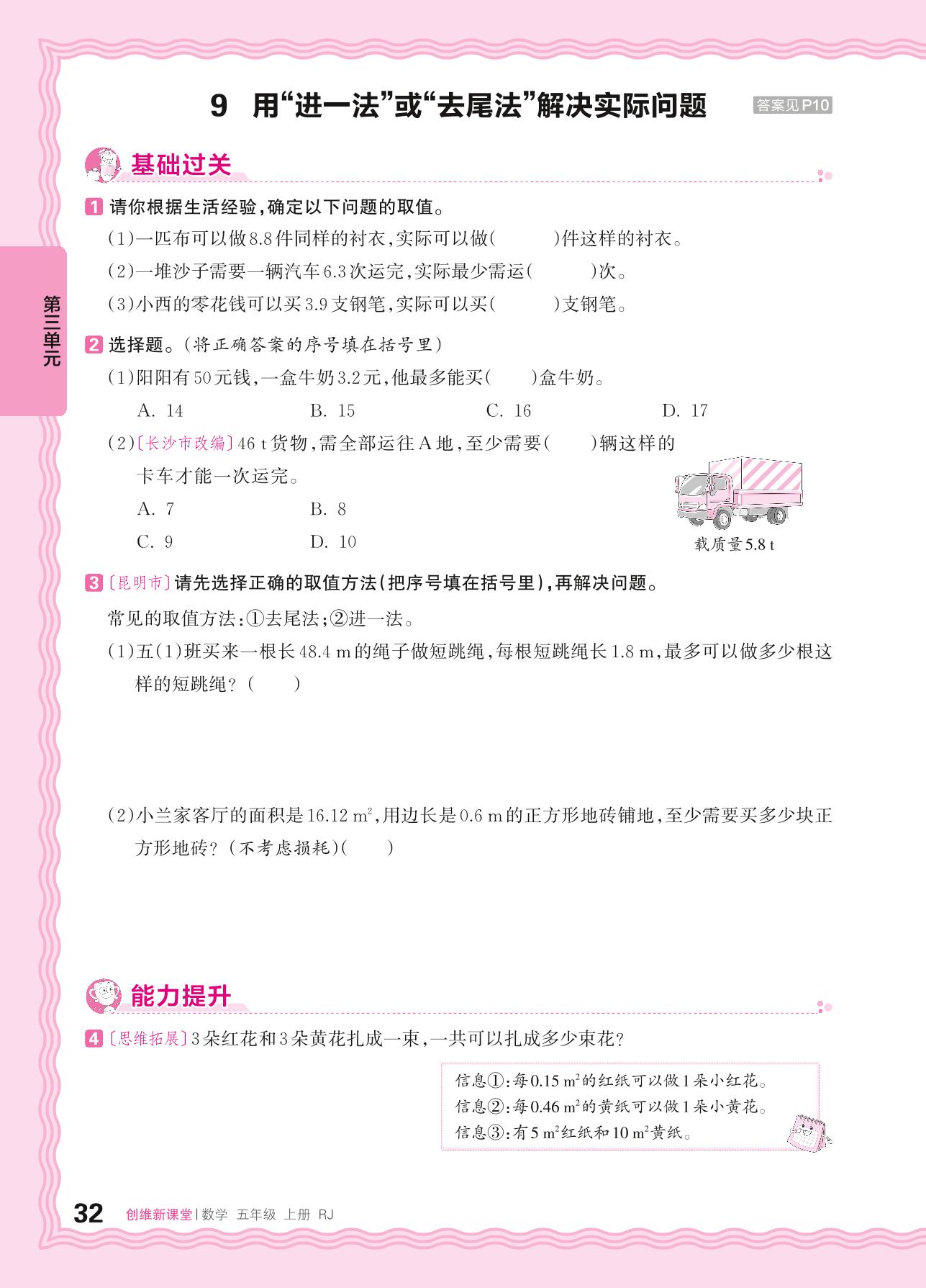 2024秋上册五年级数学人教版 第三单元 小数除法——9. 用“进一法”和“去尾法”解决实际问题