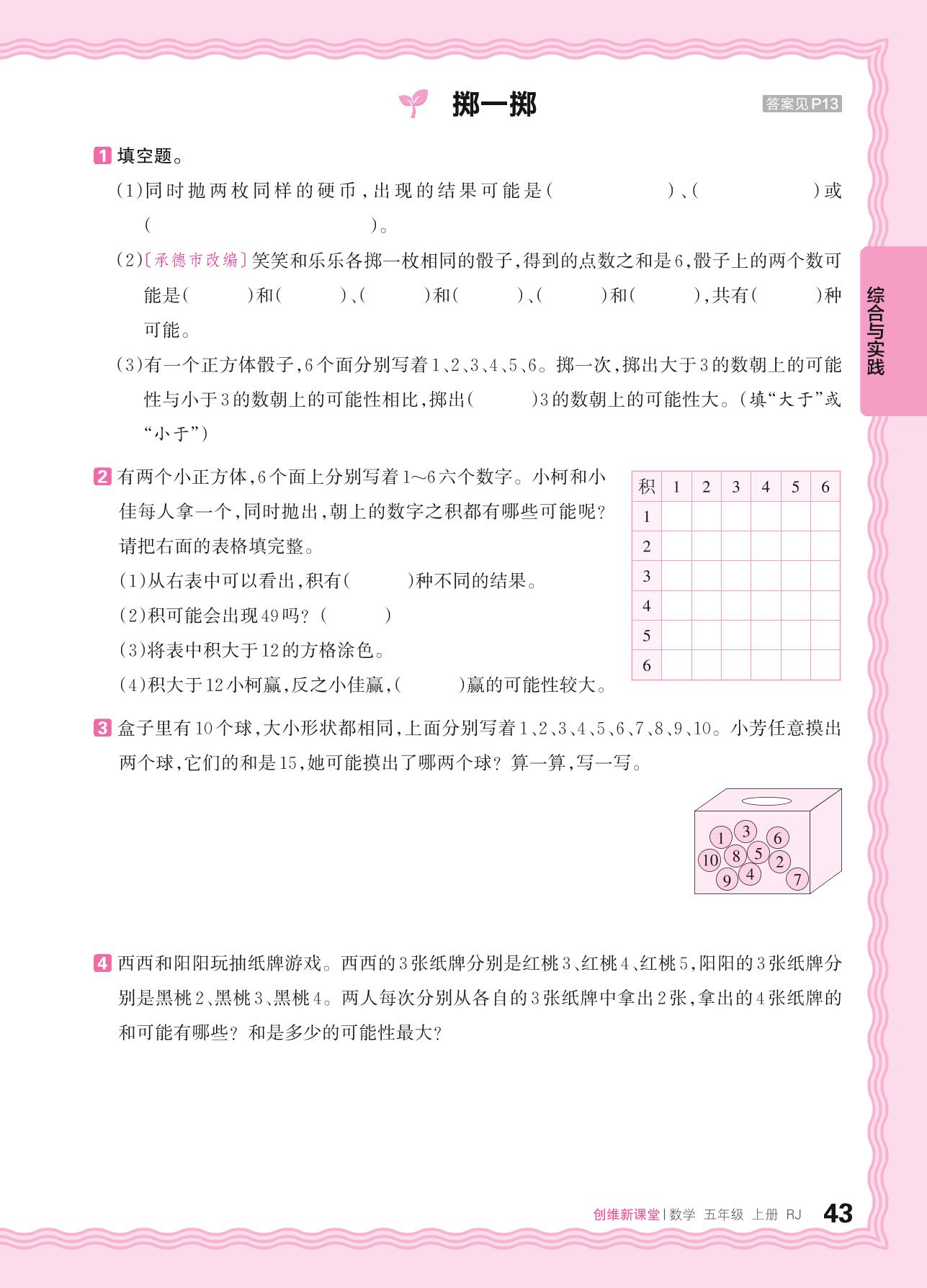 2024秋上册五年级数学人教版 第四单元 可能性—— 掷一掷